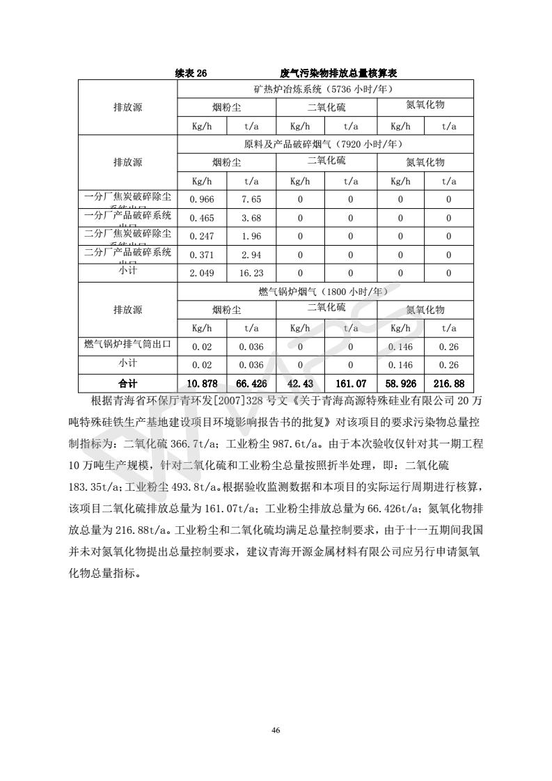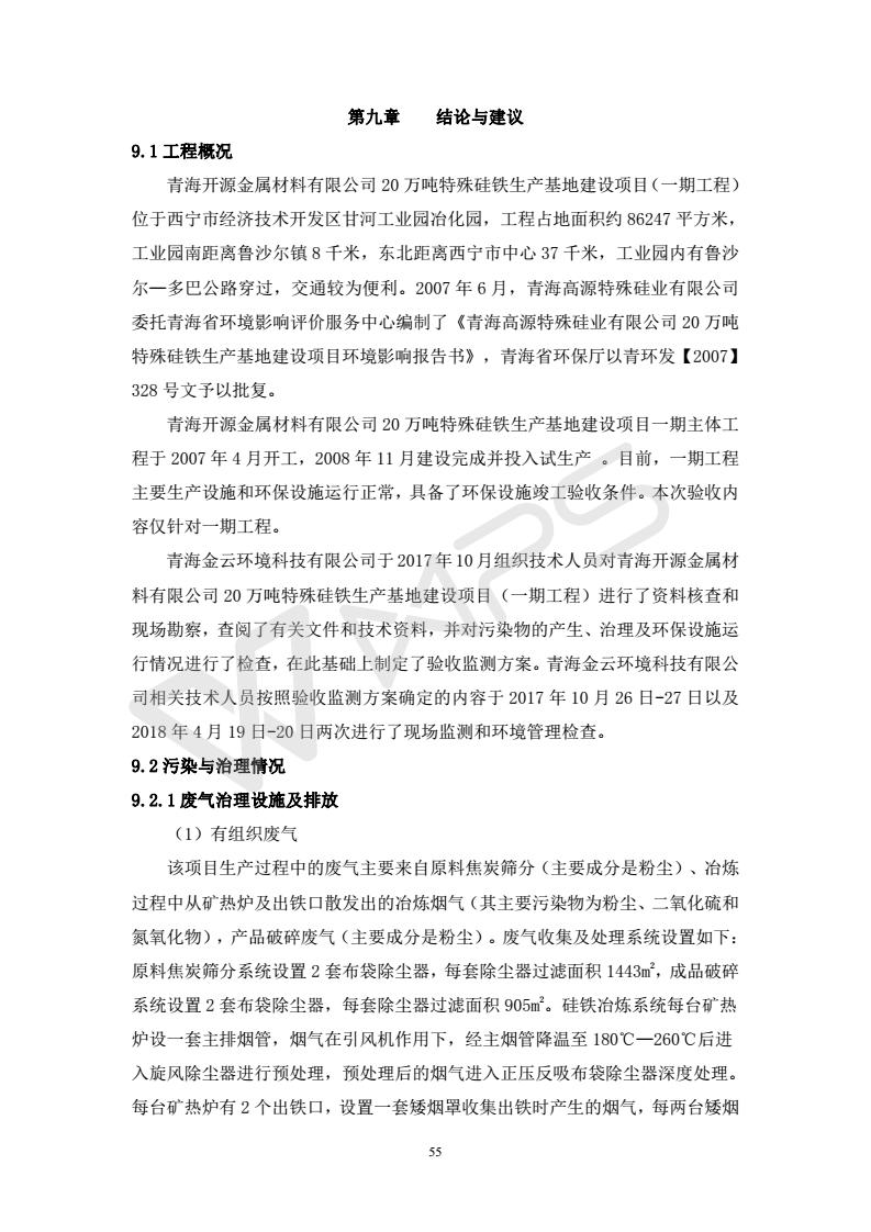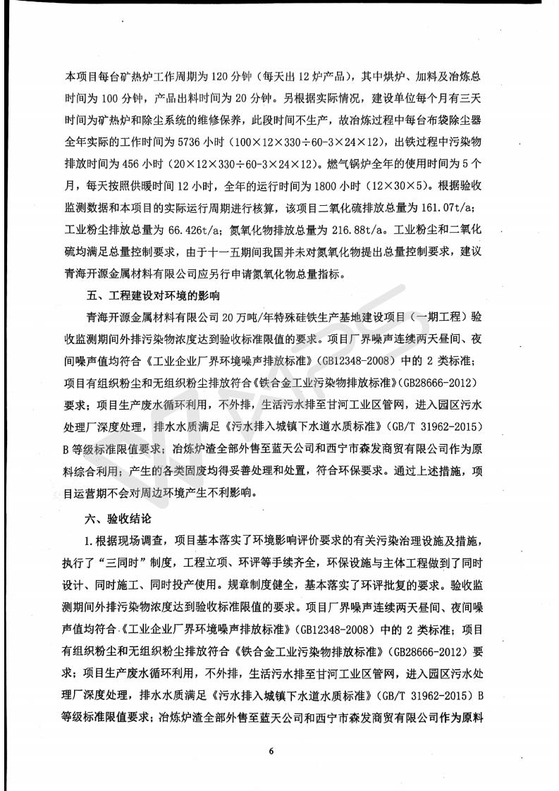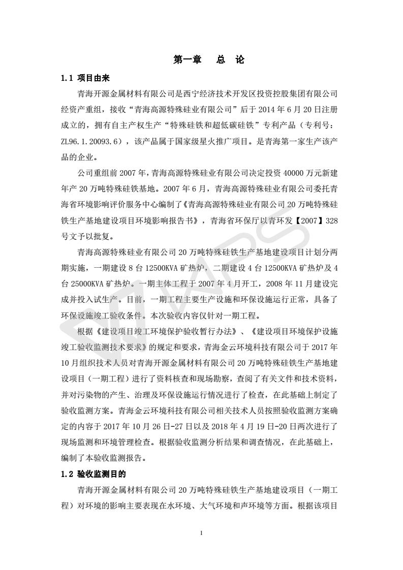 青海開源金屬材料有限公司20萬噸特殊硅鐵生產(chǎn)基地建設(shè)項(xiàng)目(一期工程)竣工環(huán)境保護(hù)驗(yàn)收?qǐng)?bào)告書會(huì)后修改20180521