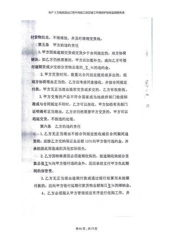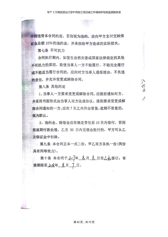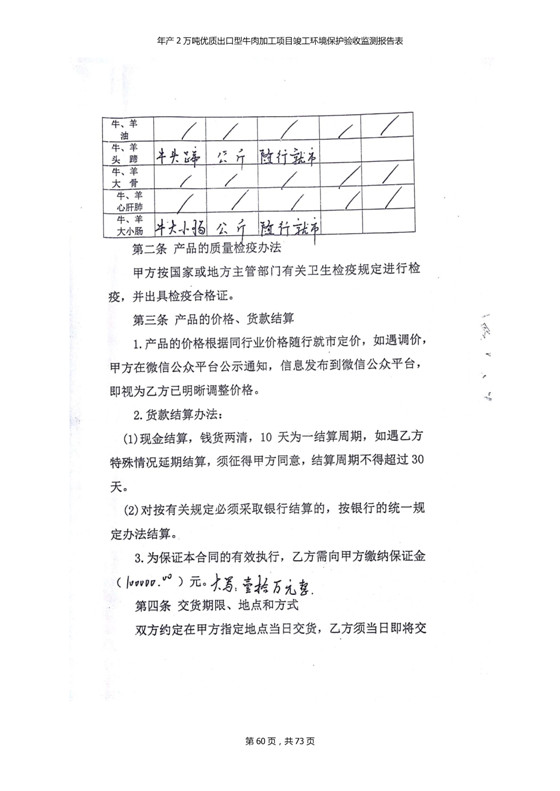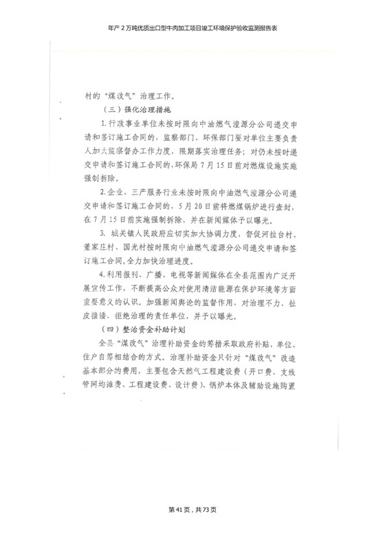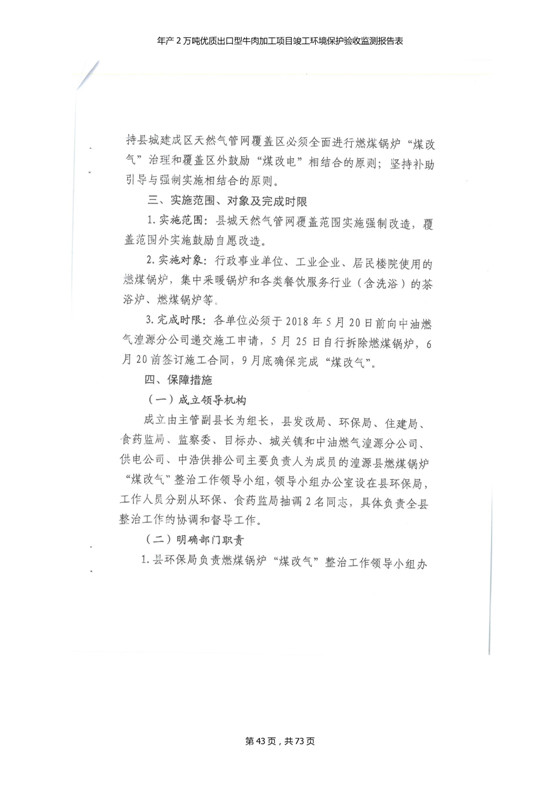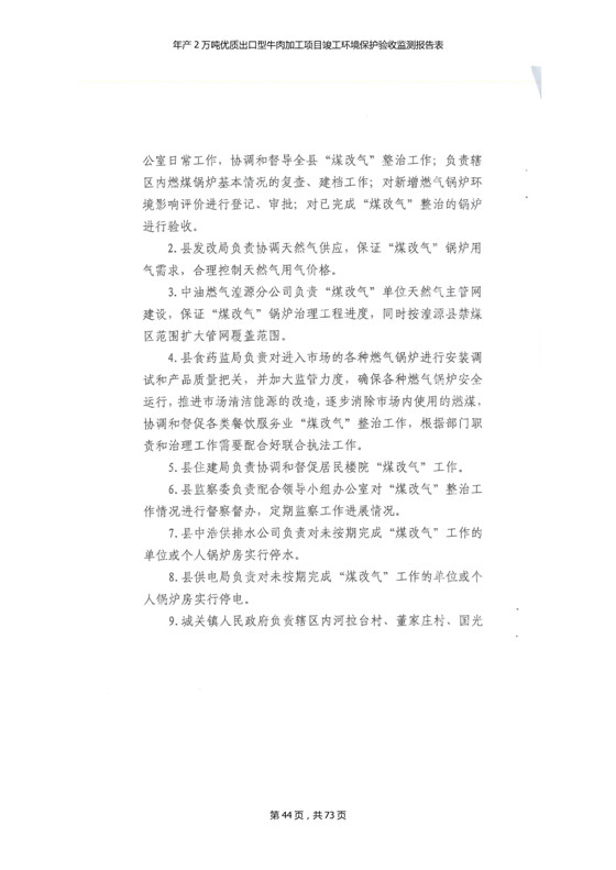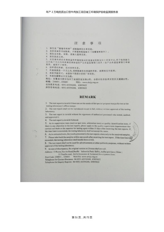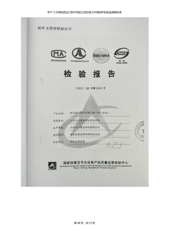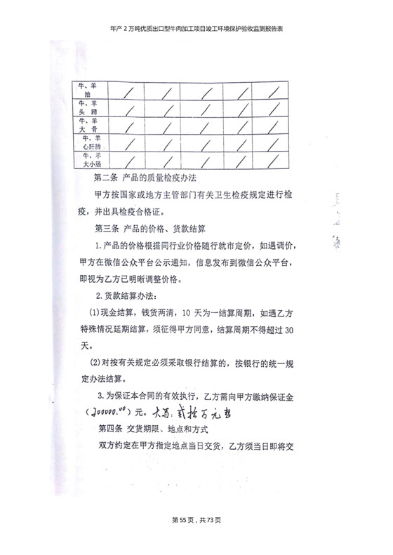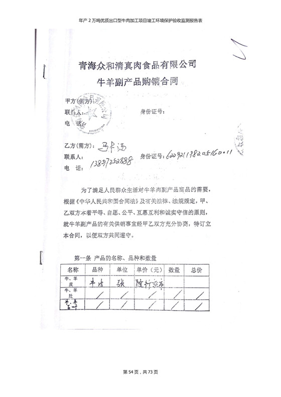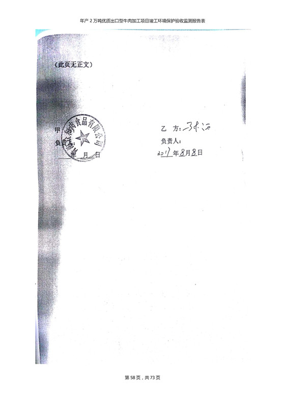 根據(jù)中華人民共和國(guó)國(guó)務(wù)院令第253號(hào)《建設(shè)項(xiàng)目環(huán)境保護(hù)管理?xiàng)l例》(中華人民共和國(guó)國(guó)務(wù)院令第682號(hào)《國(guó)務(wù)院關(guān)于修改〈建設(shè)項(xiàng)目環(huán)境保護(hù)管理?xiàng)l例〉的決定》和《建設(shè)項(xiàng)目竣工環(huán)境保護(hù)驗(yàn)收暫行辦法》,嚴(yán)格依照有關(guān)法律法規(guī),建設(shè)項(xiàng)目環(huán)境保護(hù)設(shè)施驗(yàn)收技術(shù)規(guī)范,本項(xiàng)目環(huán)評(píng)報(bào)告表和環(huán)保審批部門審批意見以及企業(yè)自行驗(yàn)收相關(guān)要求等對(duì)本項(xiàng)目進(jìn)行驗(yàn)收,本項(xiàng)目符合環(huán)保驗(yàn)收條件,可以通過環(huán)保驗(yàn)收。 青海三江一力農(nóng)業(yè)有限公司組織召開年產(chǎn)2萬(wàn)噸優(yōu)質(zhì)出口型牛肉加工項(xiàng)目(一期工程)驗(yàn)收組意見.
