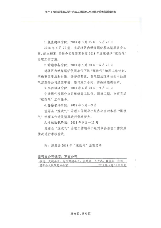 2018年7月11日,青海三江一力農(nóng)業(yè)有限公司組織召開年產(chǎn)2萬(wàn)噸優(yōu)質(zhì)出口型牛肉加工項(xiàng)目竣工環(huán)境保護(hù)驗(yàn)收會(huì)。
