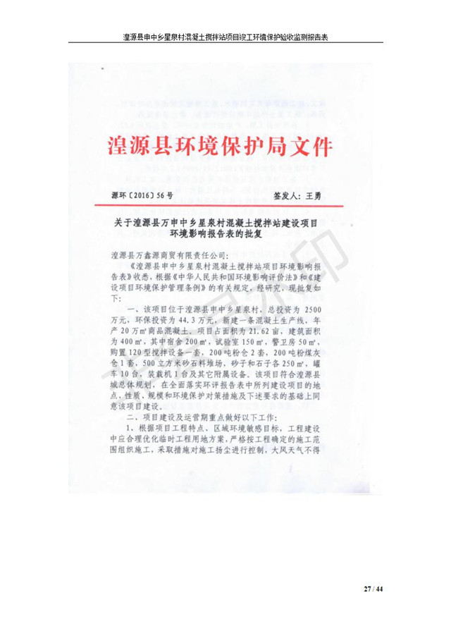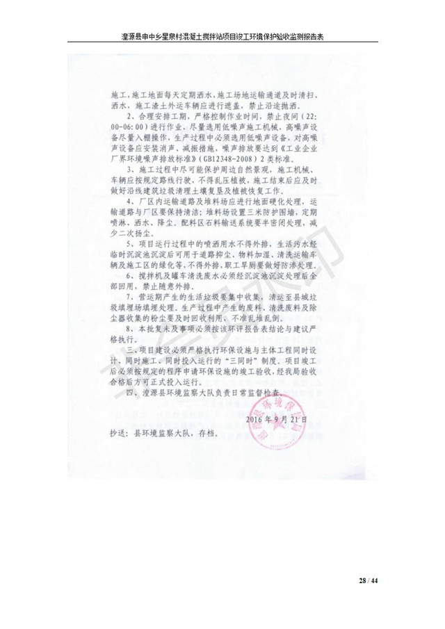 湟源縣申中鄉(xiāng)星泉村混凝土攪拌站項(xiàng)目竣工環(huán)境保護(hù)驗(yàn)收監(jiān)測(cè)報(bào)告表公示發(fā)布日期:(2018-11-16) 點(diǎn)擊次數(shù):2234 |