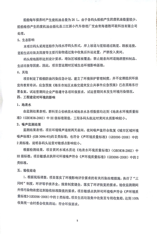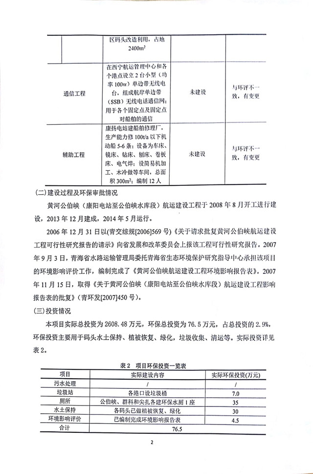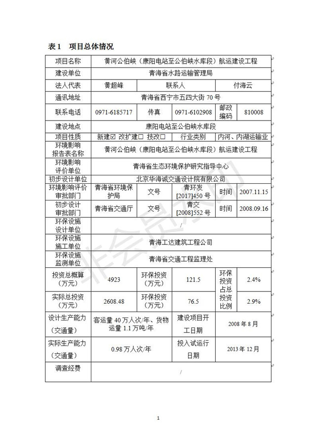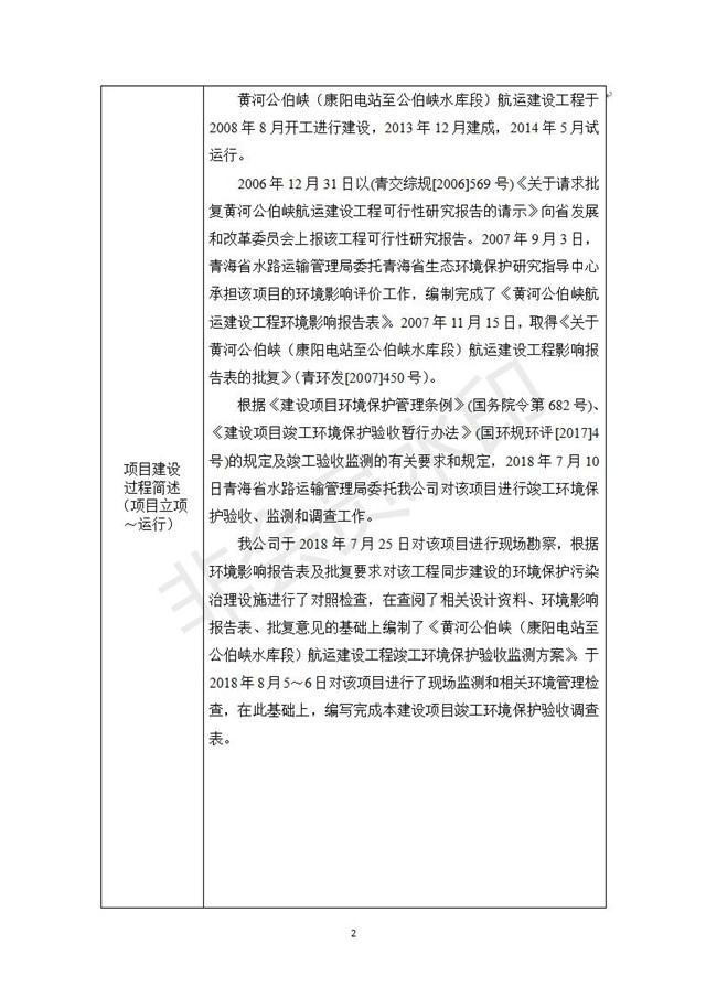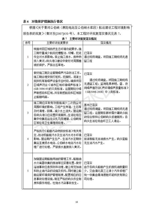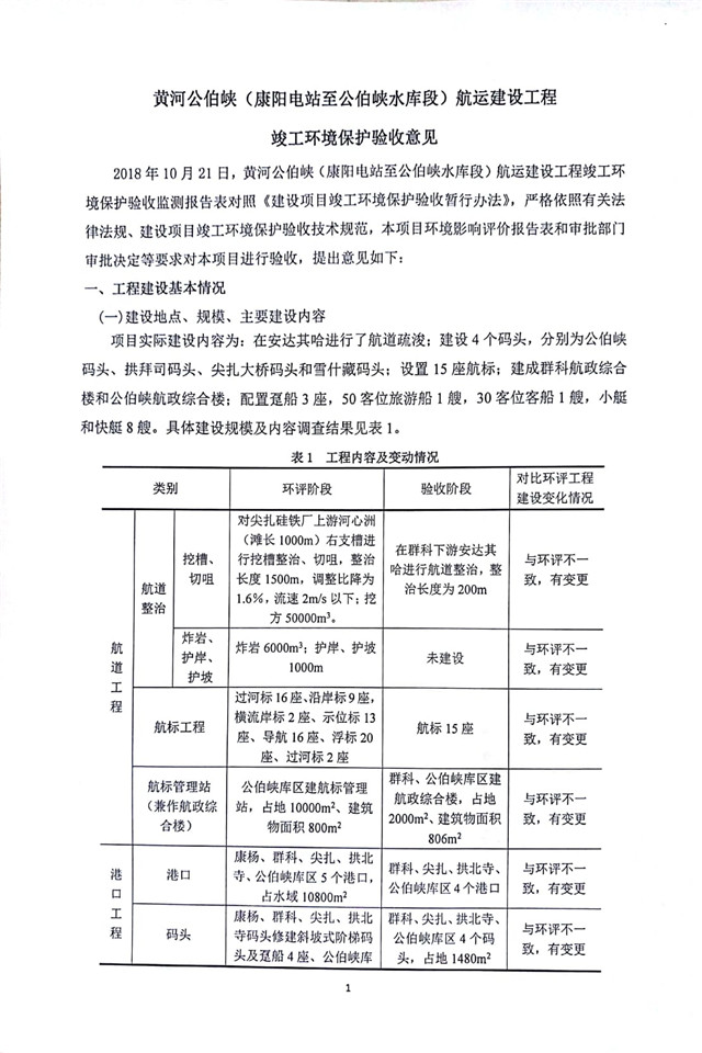 黃河公伯峽(康楊電站至公伯峽水庫段)航運建設工程竣工環(huán)境保護驗收調查報告表公示發(fā)布日期:(2018-11-16) 點擊次數(shù):2420 |