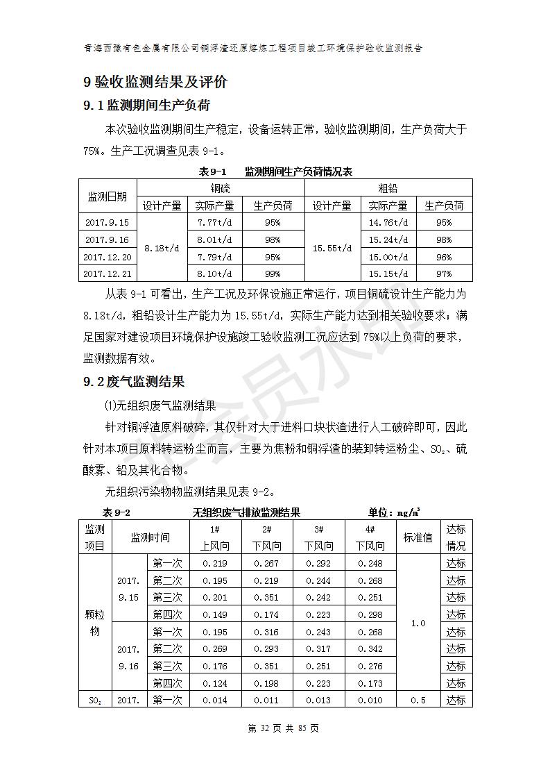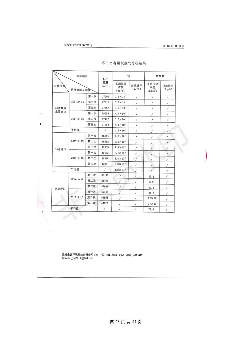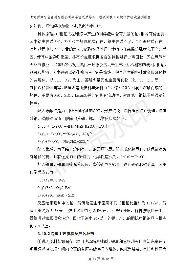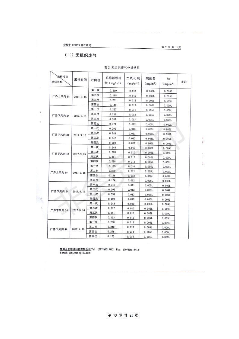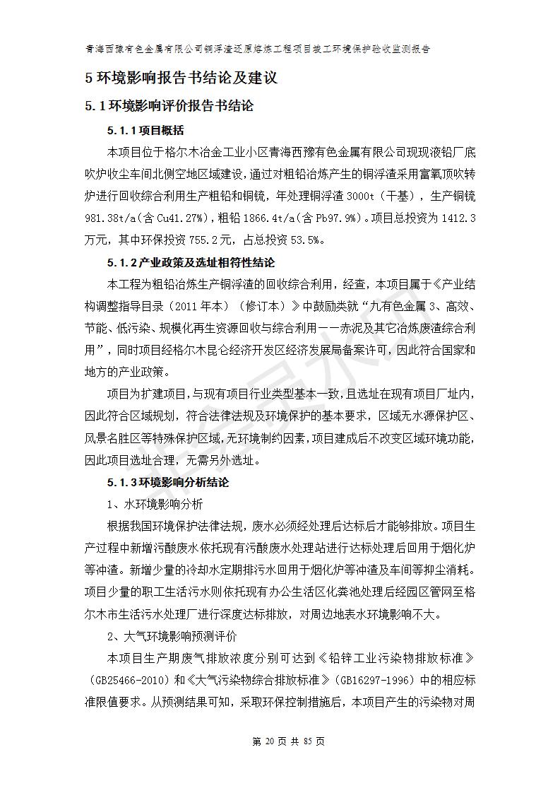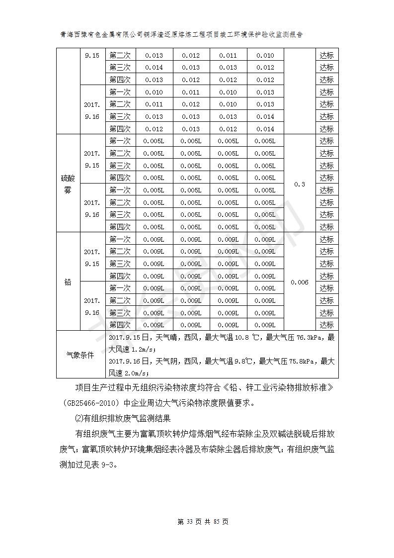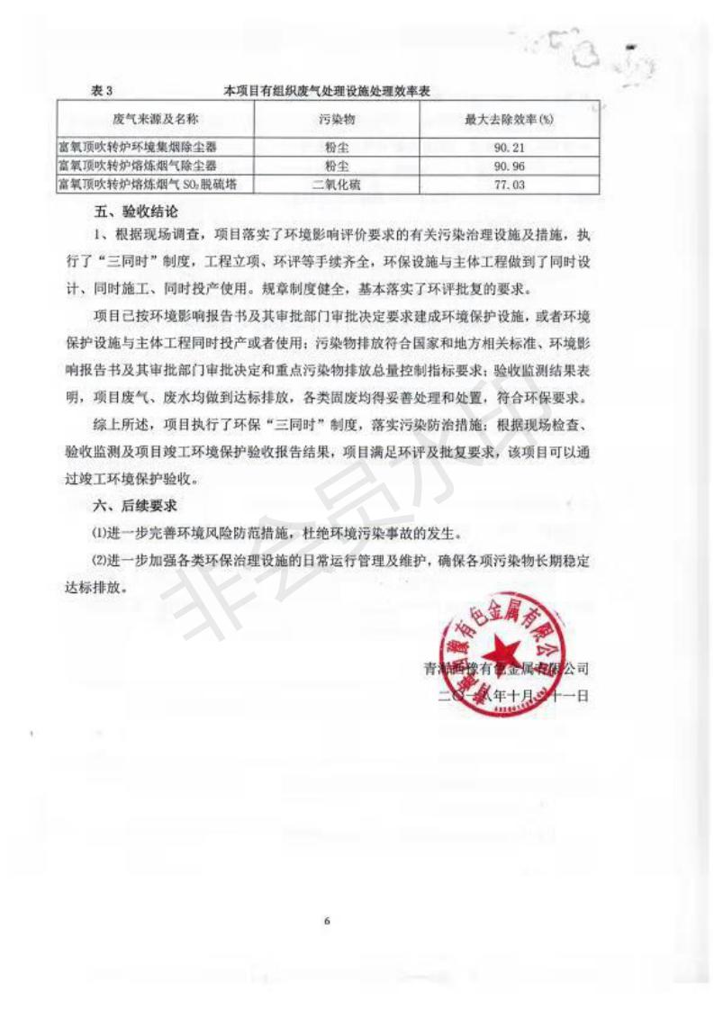 青海西豫有色金屬有限公司銅浮渣還原熔煉工程項(xiàng)目竣工環(huán)境保護(hù)驗(yàn)收監(jiān)測(cè)報(bào)告公示發(fā)布日期:(2018-11-23) 點(diǎn)擊次數(shù):2564 |