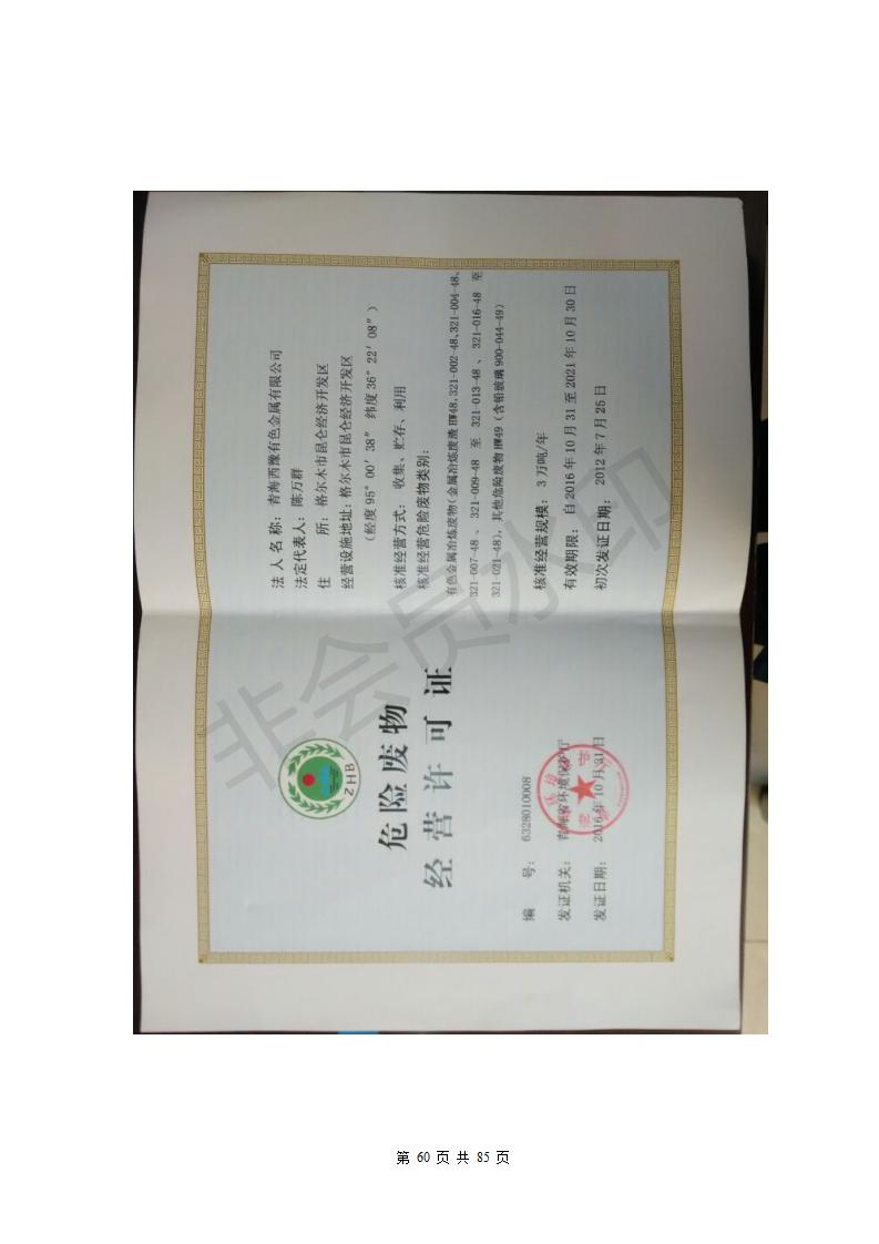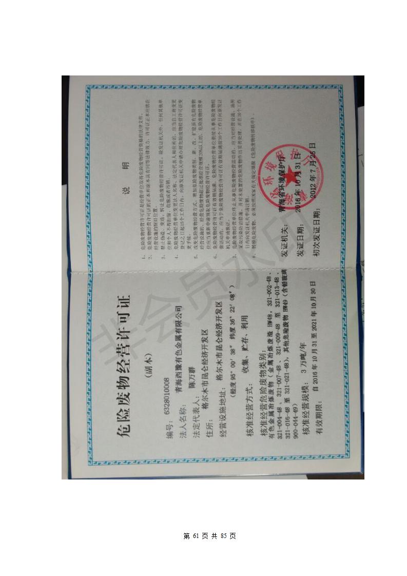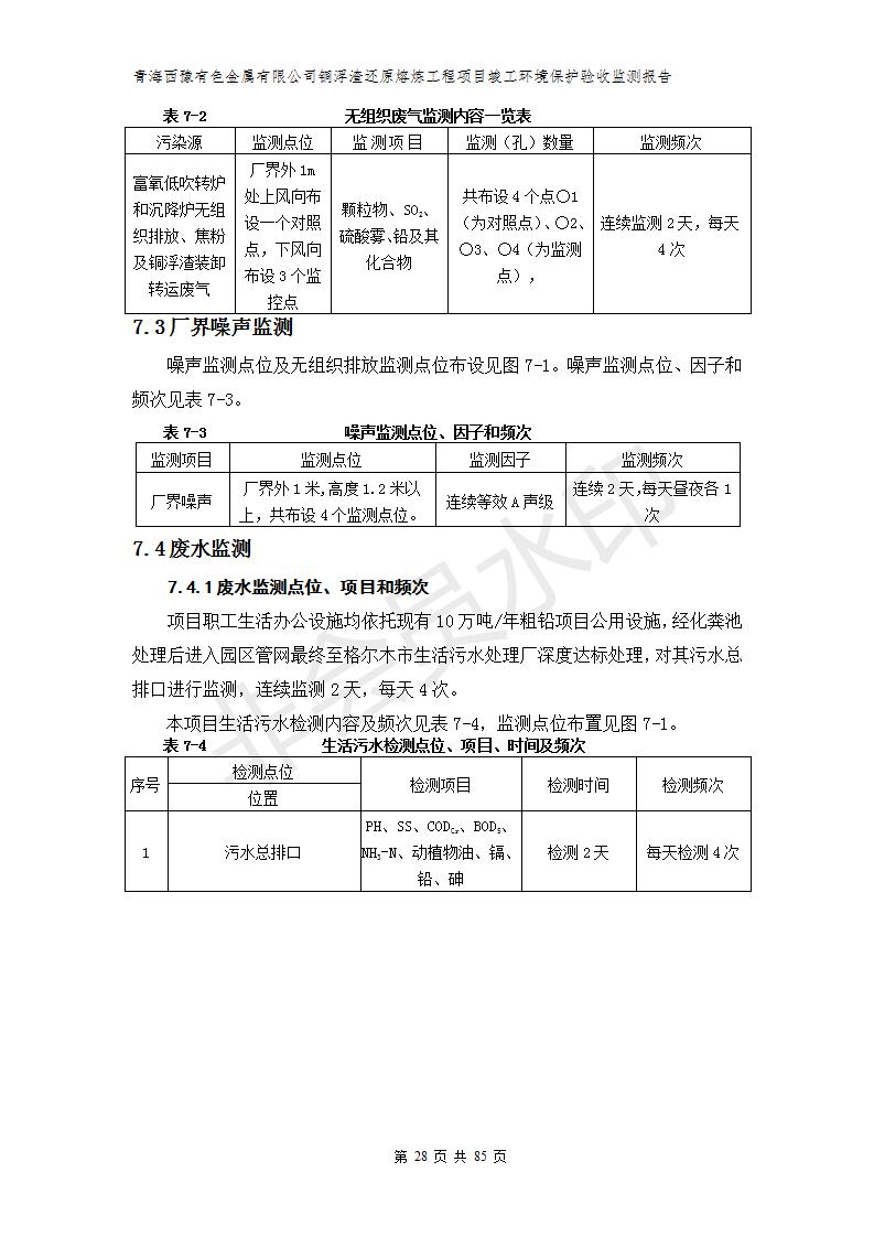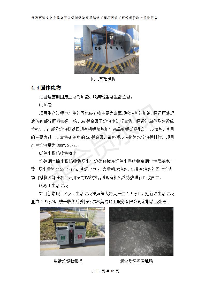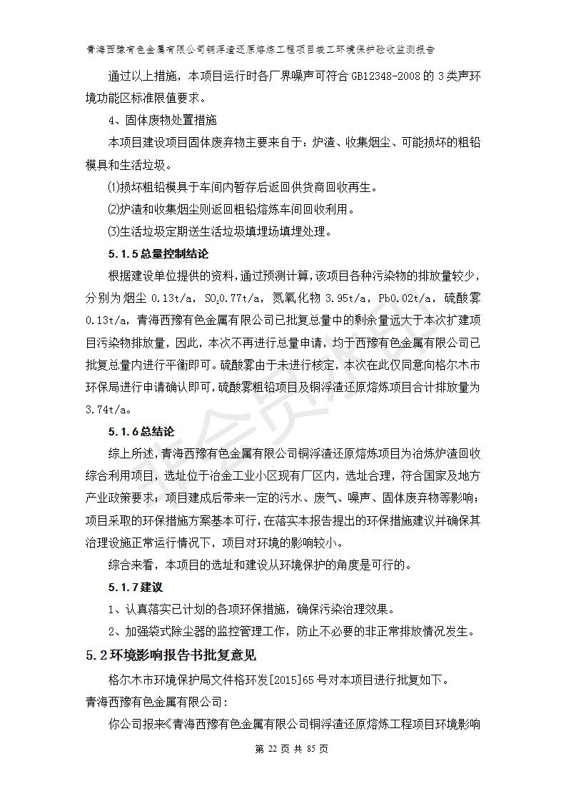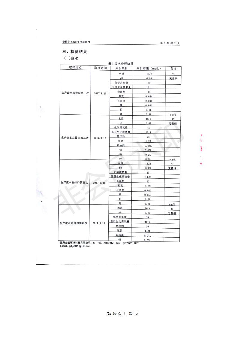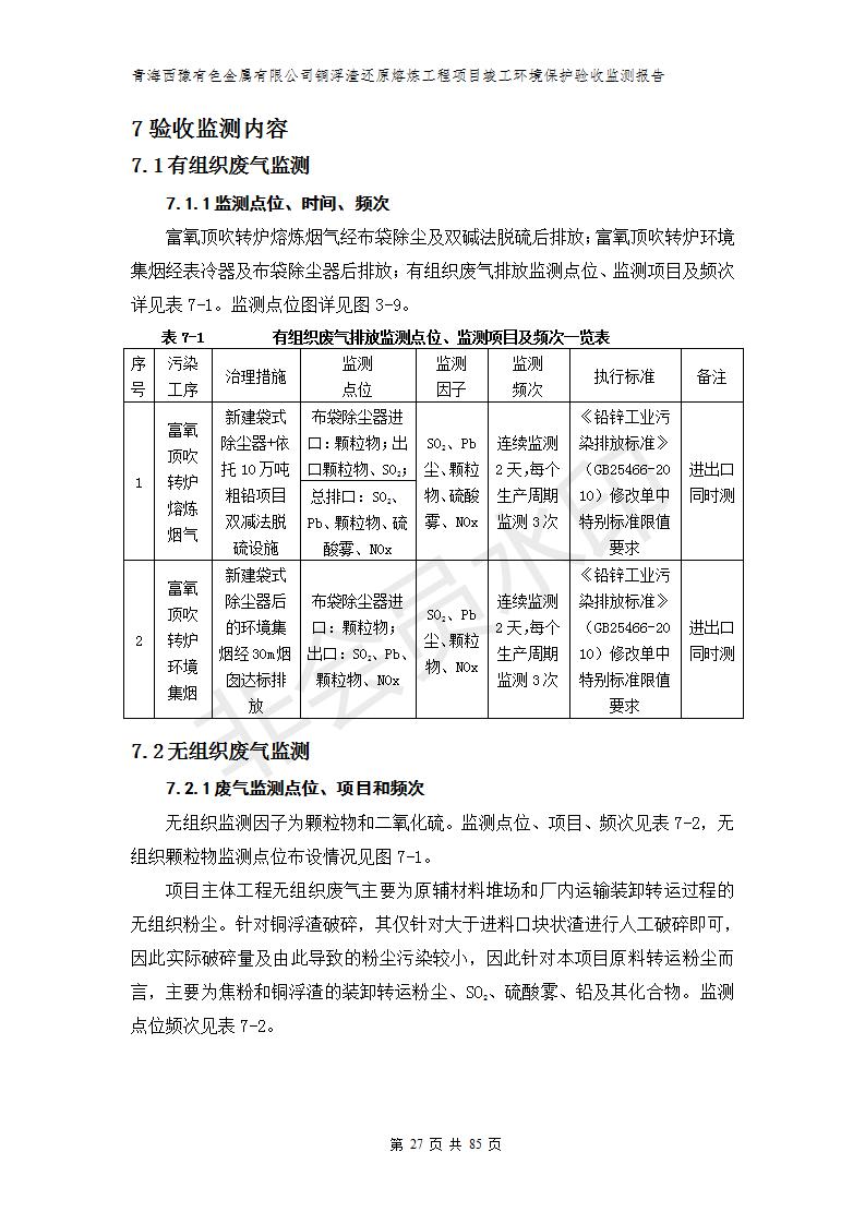 青海西豫有色金屬有限公司銅浮渣還原熔煉工程項(xiàng)目竣工環(huán)境保護(hù)驗(yàn)收監(jiān)測(cè)報(bào)告公示發(fā)布日期:(2018-11-23) 點(diǎn)擊次數(shù):2564 |
