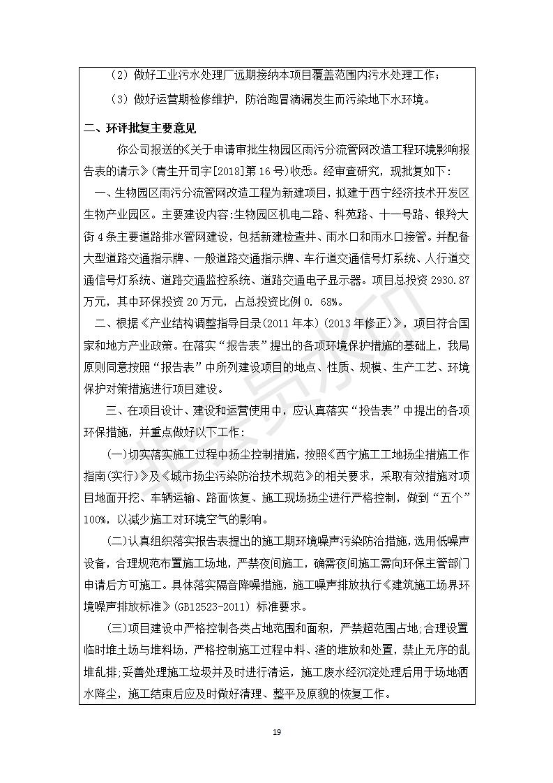 生物園區(qū)雨污分流管網(wǎng)改造工程竣工環(huán)境保護(hù)驗(yàn)收調(diào)查表 公示發(fā)布日期:(2018-12-21) 點(diǎn)擊次數(shù):2705 |