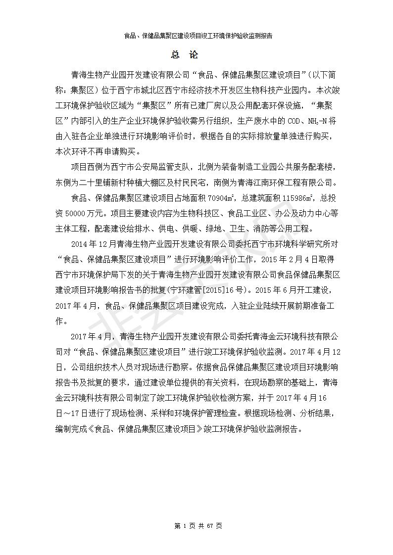 食品、保健品集聚區(qū)建設(shè)項目竣工環(huán)境保護(hù)驗收監(jiān)測報告公示發(fā)布日期:(2019-3-11) 點擊次數(shù):2039 |