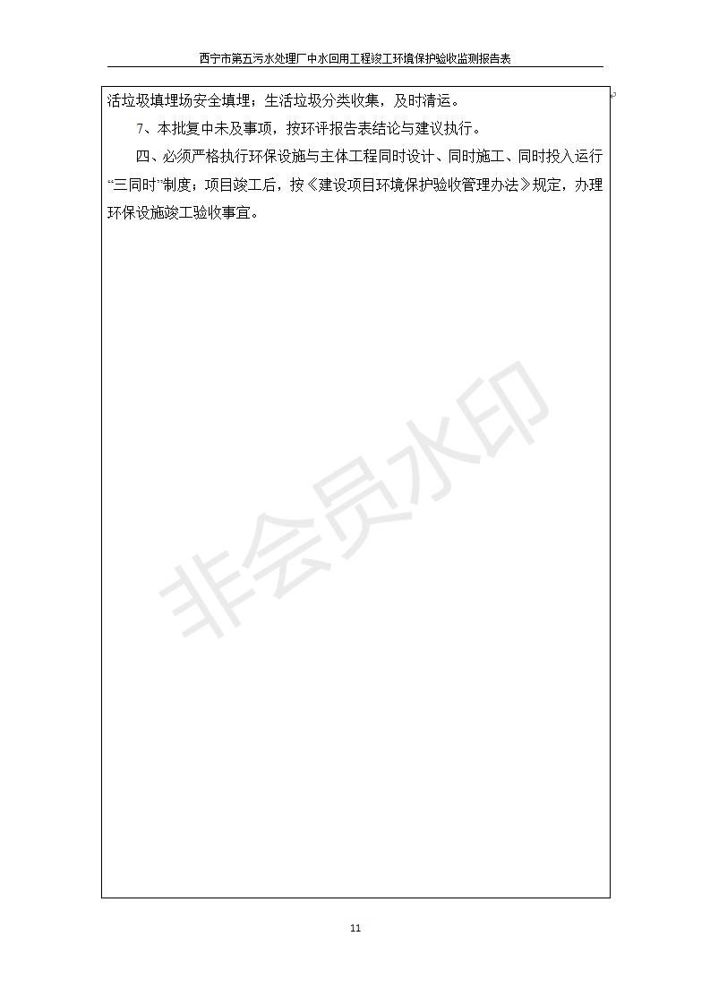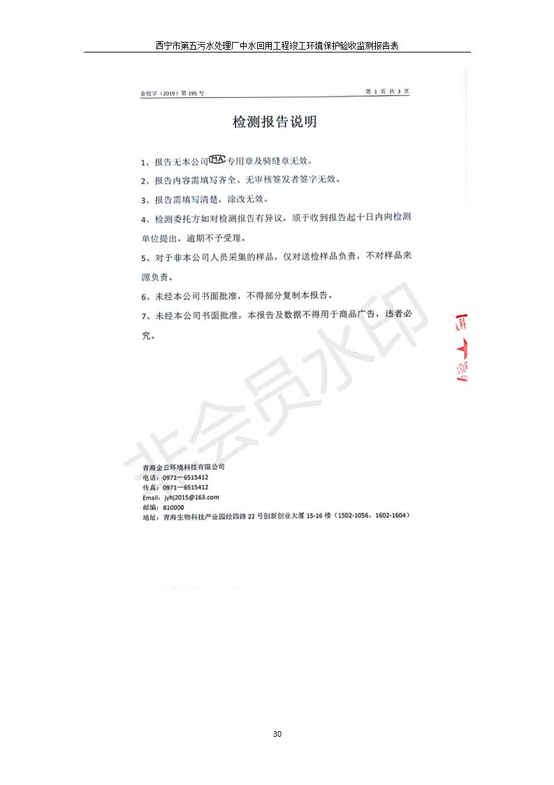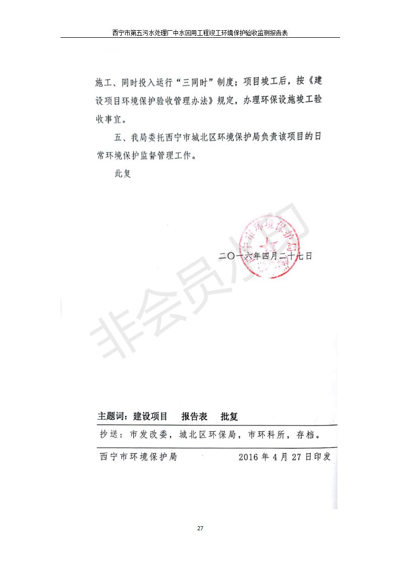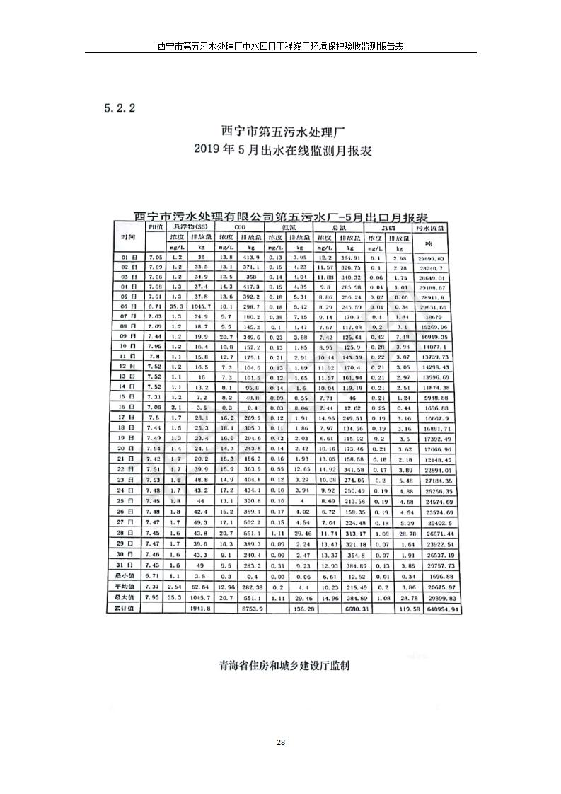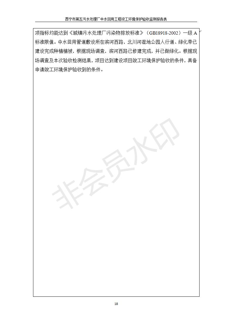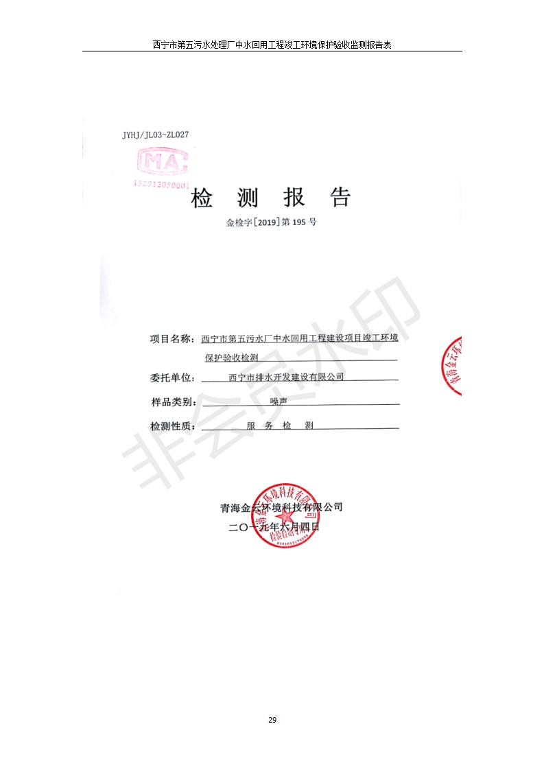 根據中華人民共和國國務院令第682號《國務院關于修改〈建設項目環(huán)境保護管理條例〉的決定》和《建設項目竣工環(huán)境保護驗收暫行辦法》(國務院令682號),西寧市第五污水處理廠中水回用工程建設項目(包括竣工環(huán)境保護驗收監(jiān)測報告表和驗收意見)公示如下。 一、項目名稱:西寧市第五污水處理廠中水回用工程建設項目 二、地點:西寧市城北區(qū)廿十里鋪雙蘇堡 三、建設單位:西寧市排水開發(fā)建設有限公司