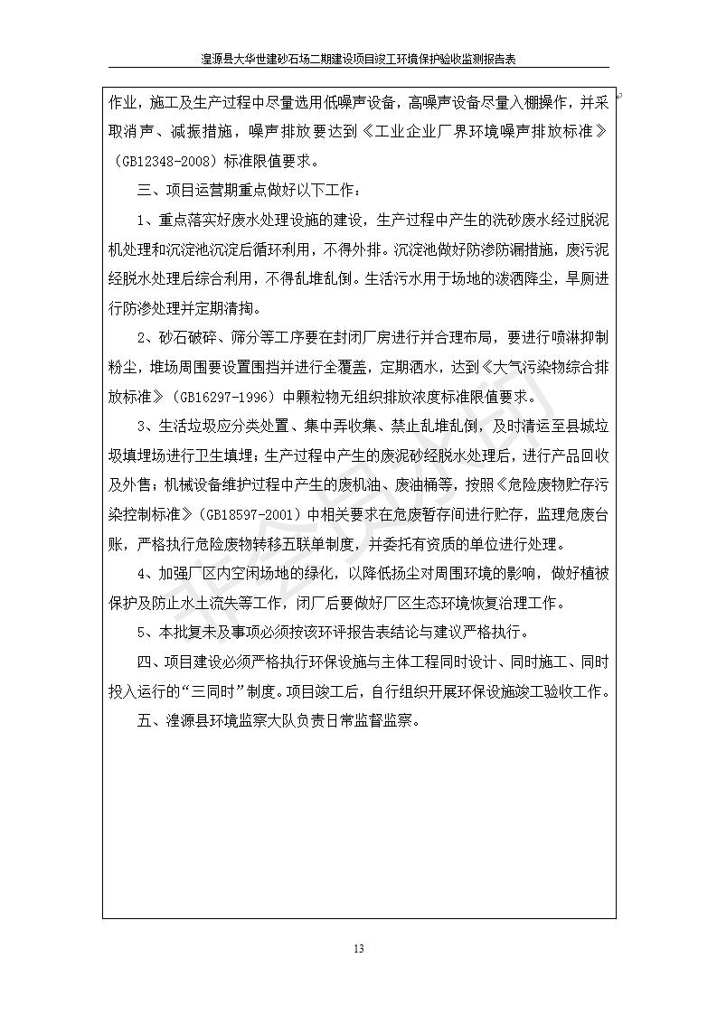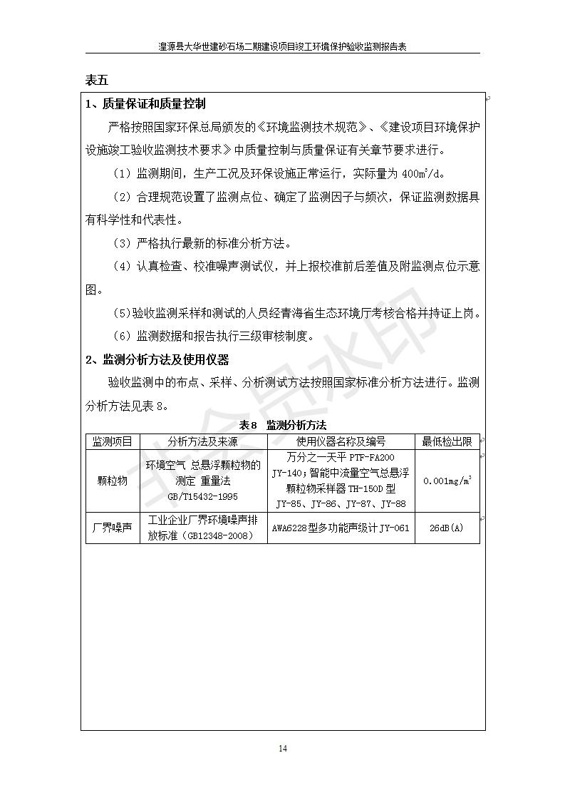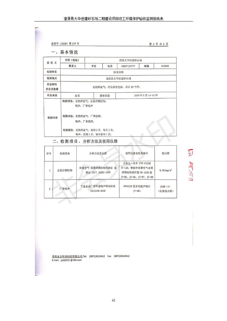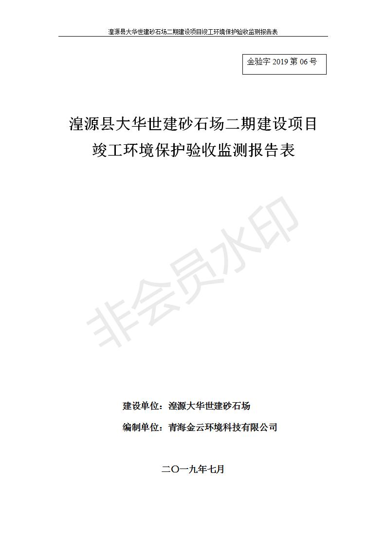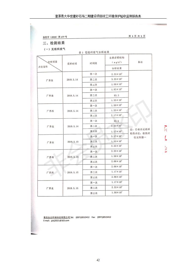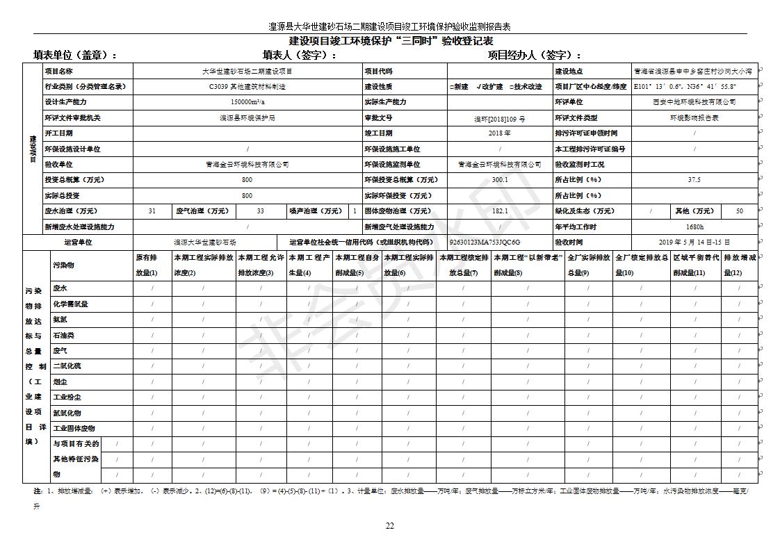 湟源大華世建砂石場湟源縣大華世建砂石場二期建設(shè)項目工環(huán)境保護驗收監(jiān)測報告表公示發(fā)布日期:(2019-7-25) 點擊次數(shù):2339 |