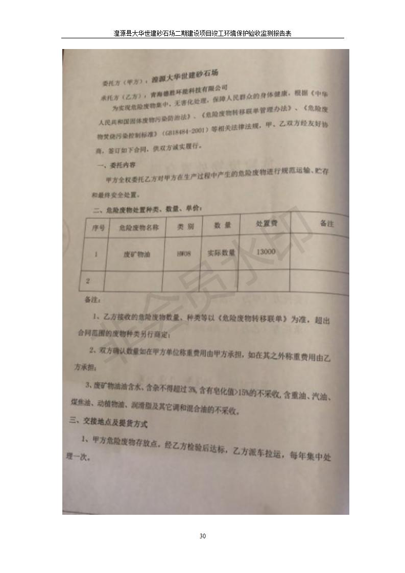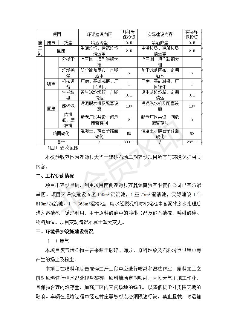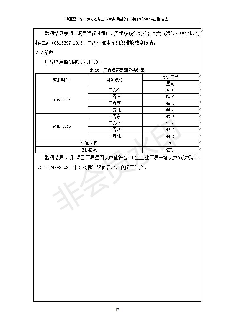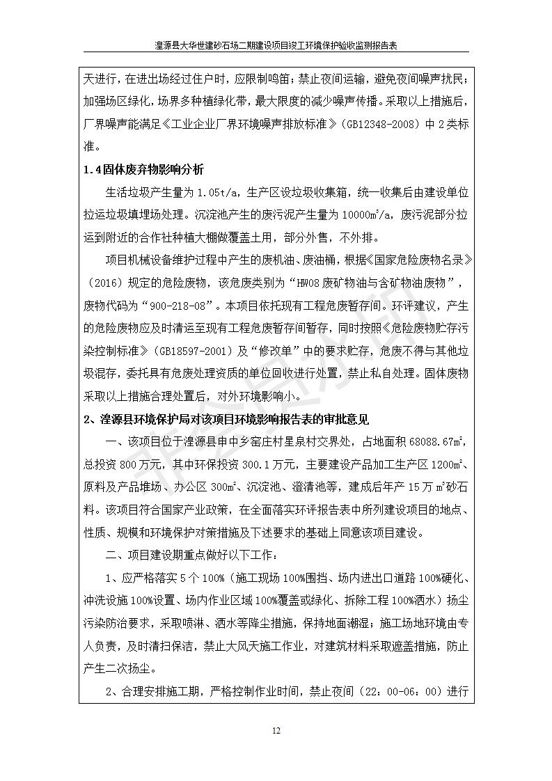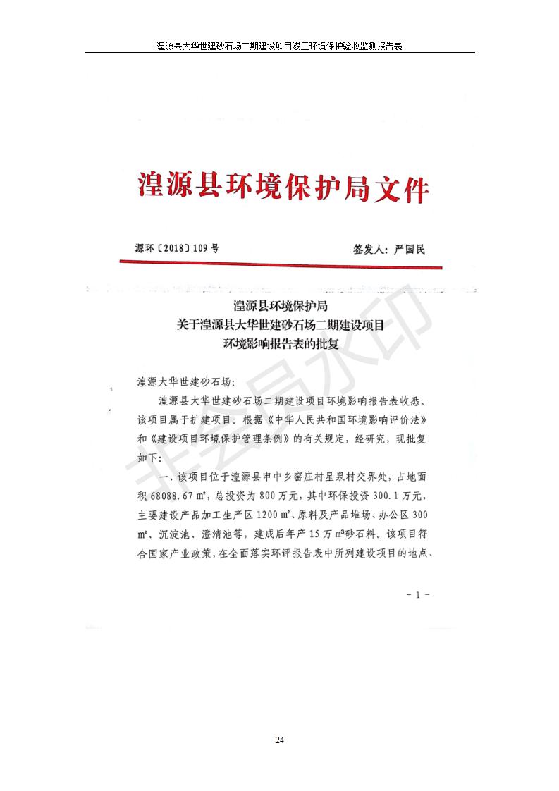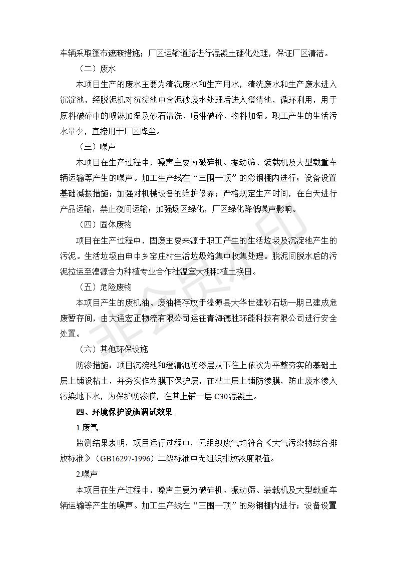根據(jù)中華人民共和國國務(wù)院令第682號《國務(wù)院關(guān)于修改〈建設(shè)項目環(huán)境保護管理條例〉的決定》和《建設(shè)項目竣工環(huán)境保護驗收暫行辦法》(國務(wù)院令682號),湟源大華世建砂石場湟源縣大華世建砂石場二期建設(shè)項目(包括竣工環(huán)境保護驗收監(jiān)測報告表和驗收意見)公示如下。 一、項目名稱:湟源縣大華世建砂石場二期建設(shè)項目 二、地點:湟源縣申中鄉(xiāng)窯莊村沙崗大小灣 三、建設(shè)單位:湟源大華世建砂石場 四、建設(shè)內(nèi)容:項目主要建設(shè)砂石料產(chǎn)品加工生產(chǎn)區(qū)、原料堆場、產(chǎn)品堆場、辦公區(qū)等。五、聯(lián)系人:張工 六、聯(lián)系電 話:0971-6515411 七、公示時間:二〇一九年七月二十五日至二〇一九年八月二十一日公示期間,對上述公示內(nèi)容如有異議,請以書面形式反饋,個人須署真實姓名,單位須加蓋公章。
