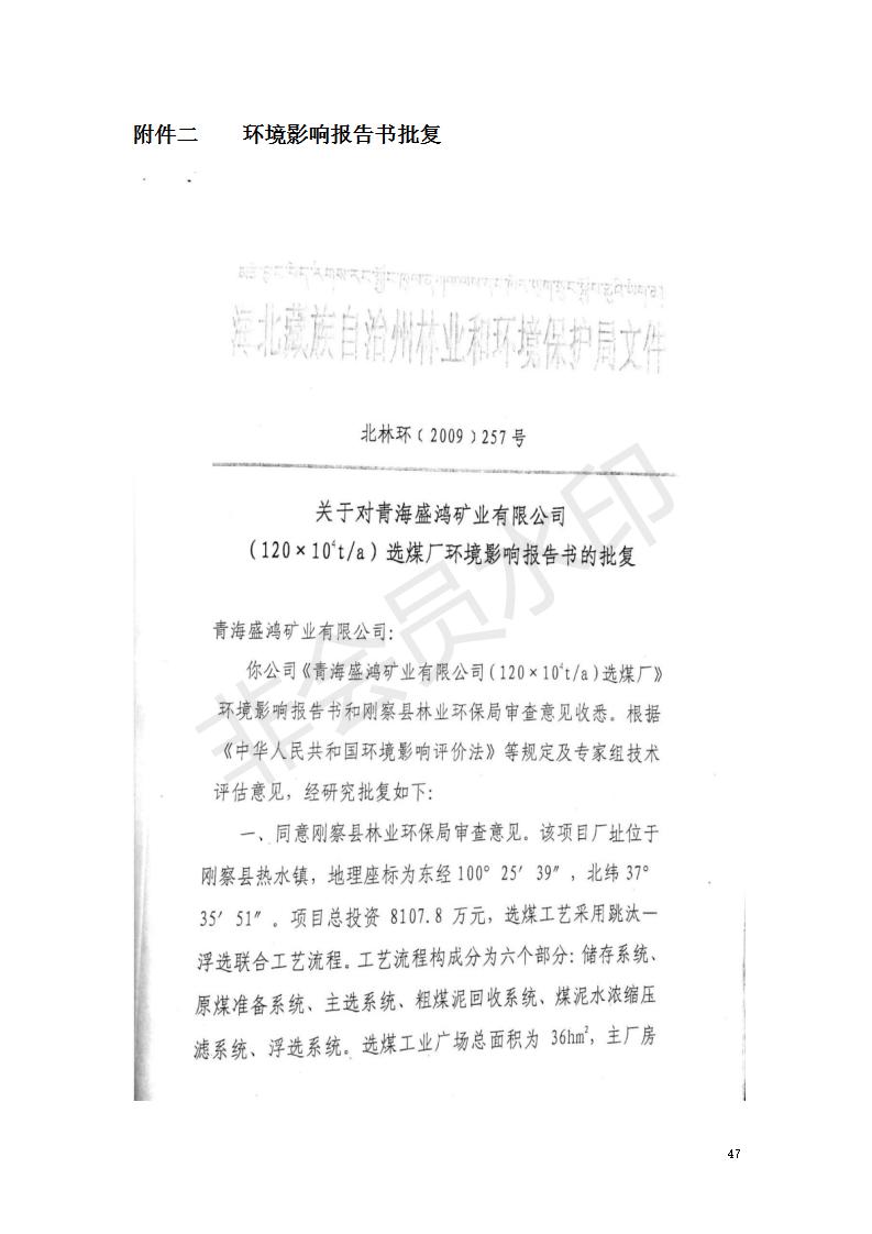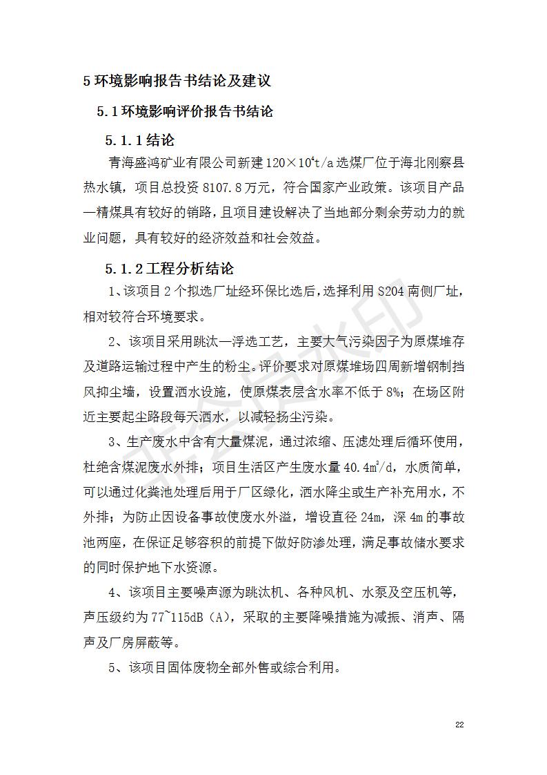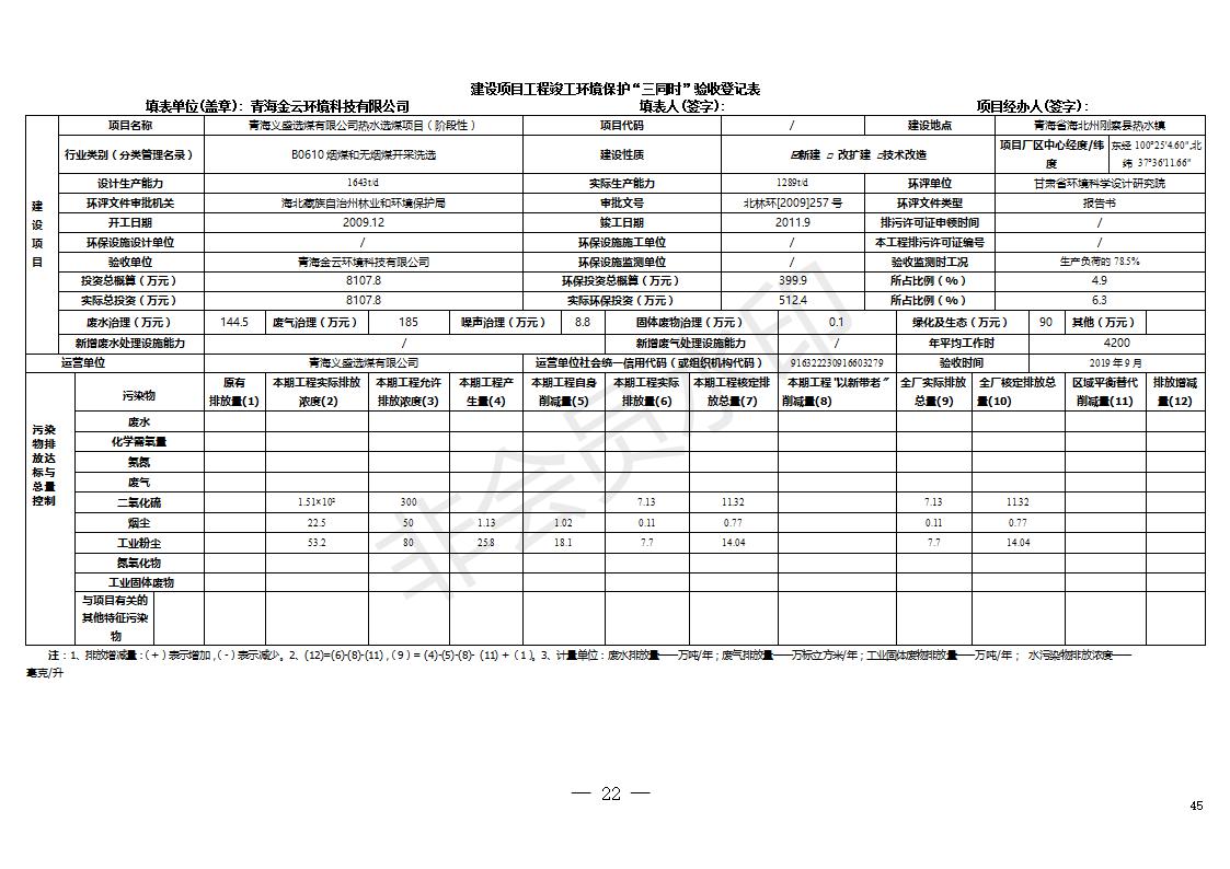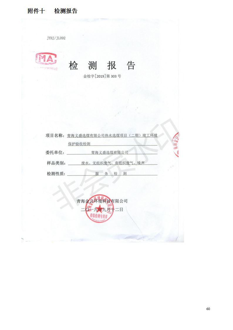 根據(jù)中華人民共和國國務院令第682號《國務院關(guān)于修改〈建設(shè)項目環(huán)境保護管理條例〉的決定》和《建設(shè)項目竣工環(huán)境保護驗收暫行辦法》(國務院令682號),青海義盛選煤有限公司熱水選煤項目(階段性)竣工環(huán)境保護驗收監(jiān)測報告(包括竣工環(huán)境保護驗收監(jiān)測報告和驗收意見)公示如下。 一、項目名稱:青海義盛選煤有限公司熱水選煤項目(階段性) 二、地點:剛察縣熱水鎮(zhèn) 此外還包括公用工程系統(tǒng)、消防系統(tǒng)及輔助生產(chǎn)設(shè)施等。 五、聯(lián)系人:張工六、聯(lián)系電話:0971-6515411 七、公示時間:二〇一九年十一月十二日至二〇一九年十二月九日