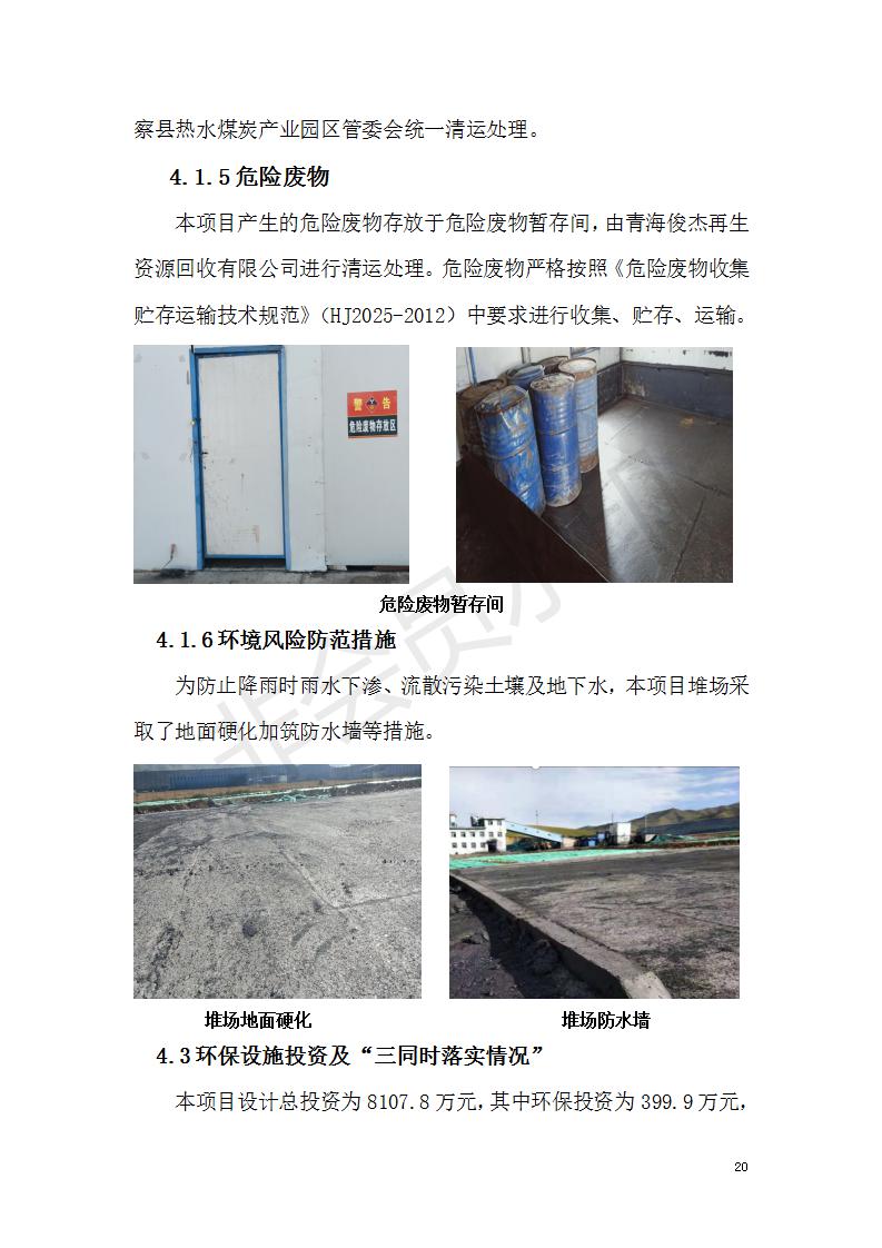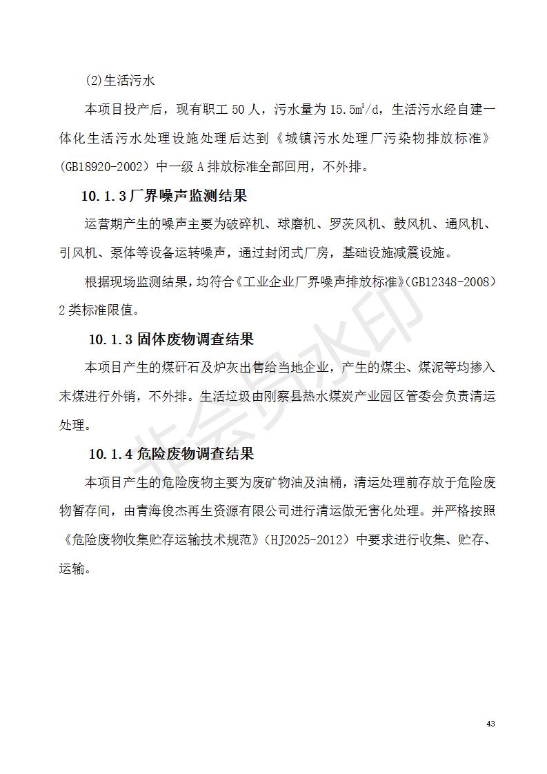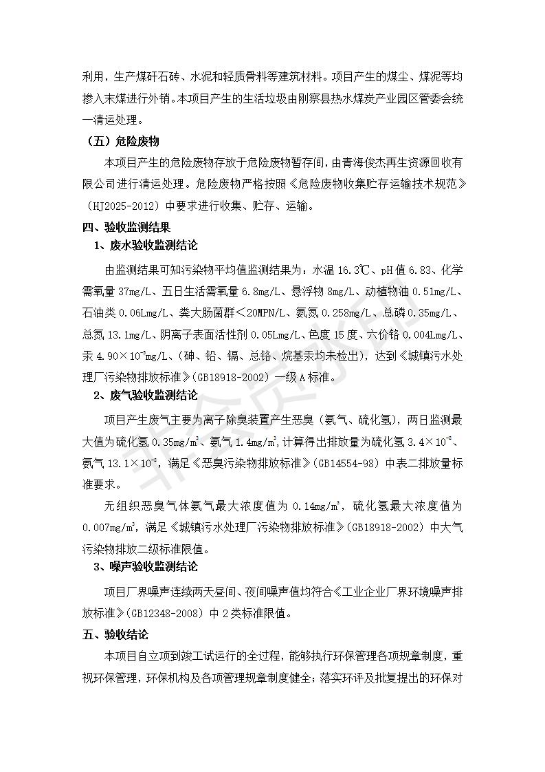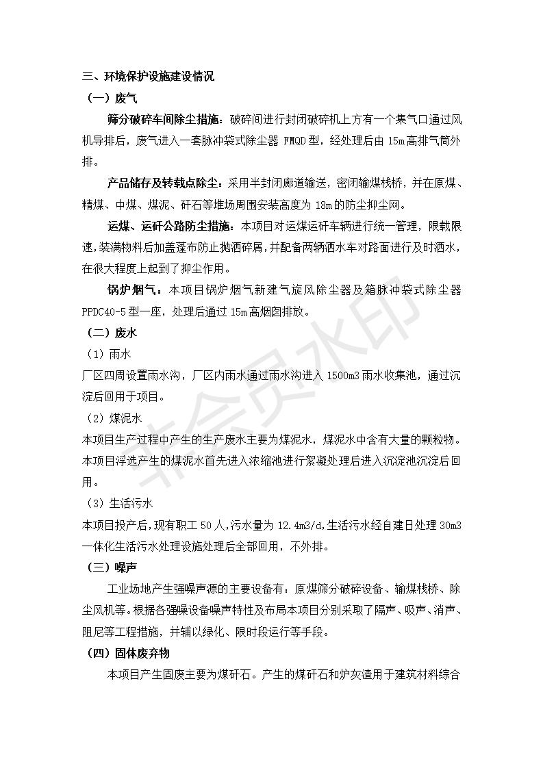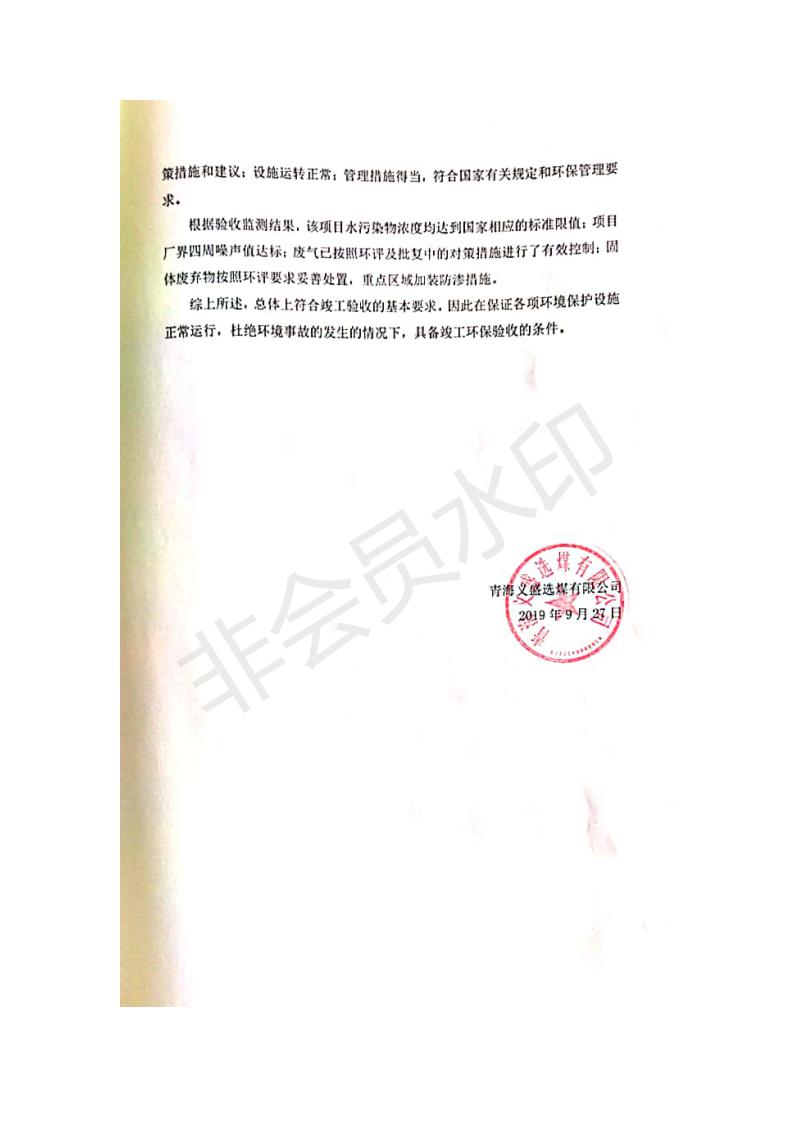 根據(jù)中華人民共和國國務院令第682號《國務院關(guān)于修改〈建設(shè)項目環(huán)境保護管理條例〉的決定》和《建設(shè)項目竣工環(huán)境保護驗收暫行辦法》(國務院令682號),青海義盛選煤有限公司熱水選煤項目(階段性)竣工環(huán)境保護驗收監(jiān)測報告(包括竣工環(huán)境保護驗收監(jiān)測報告和驗收意見)公示如下。 一、項目名稱:青海義盛選煤有限公司熱水選煤項目(階段性) 二、地點:剛察縣熱水鎮(zhèn) 此外還包括公用工程系統(tǒng)、消防系統(tǒng)及輔助生產(chǎn)設(shè)施等。 五、聯(lián)系人:張工六、聯(lián)系電話:0971-6515411 七、公示時間:二〇一九年十一月十二日至二〇一九年十二月九日