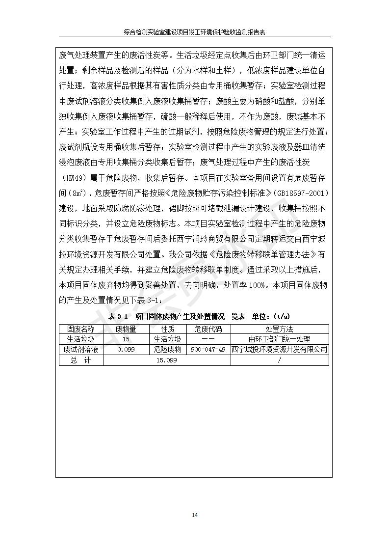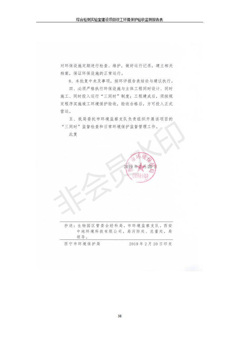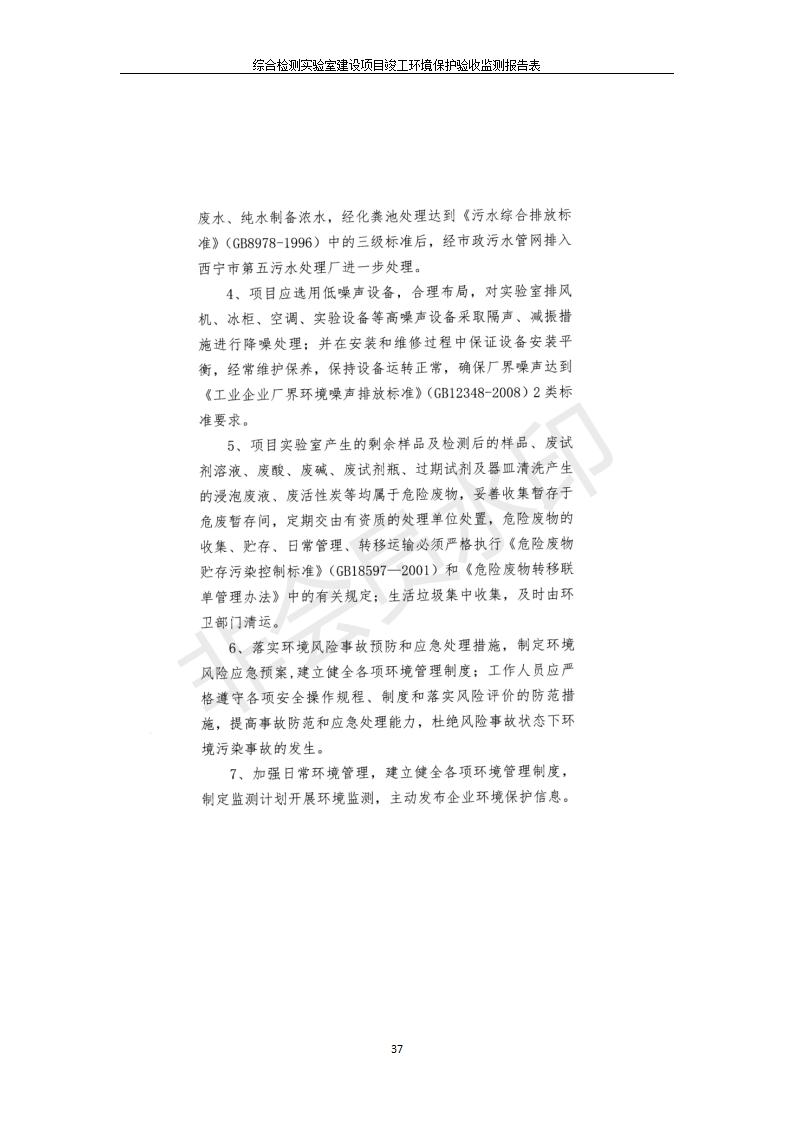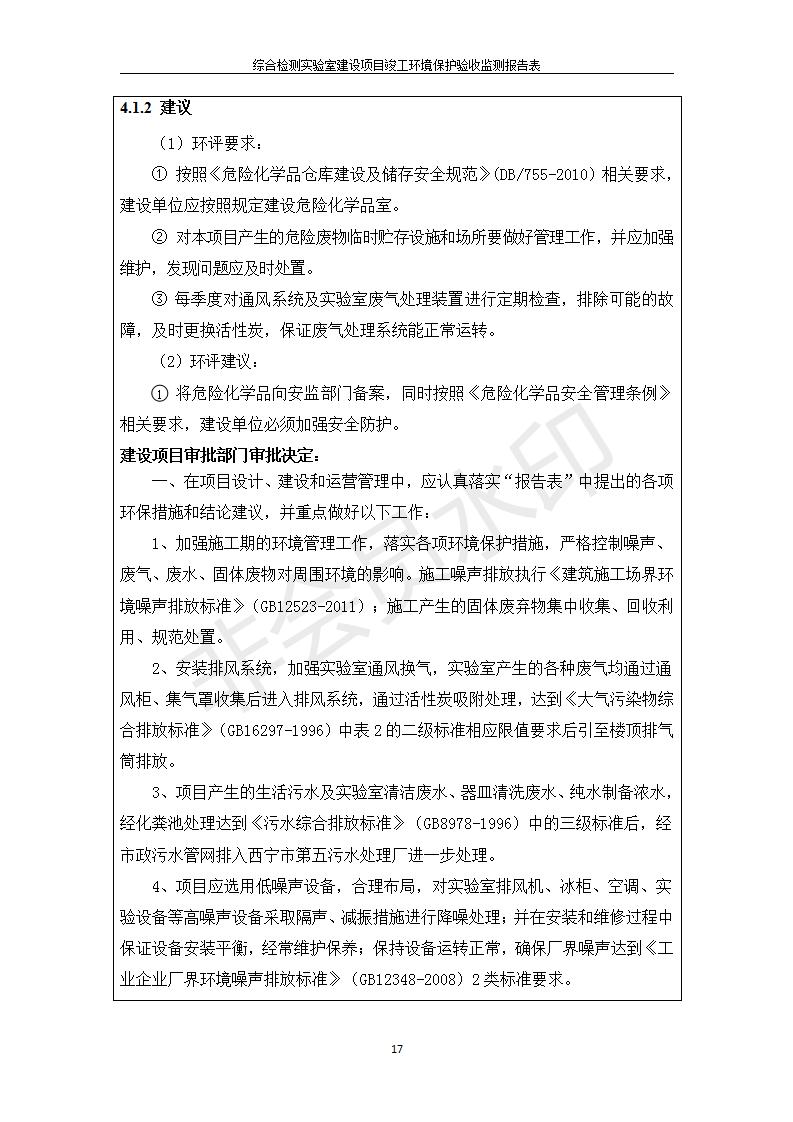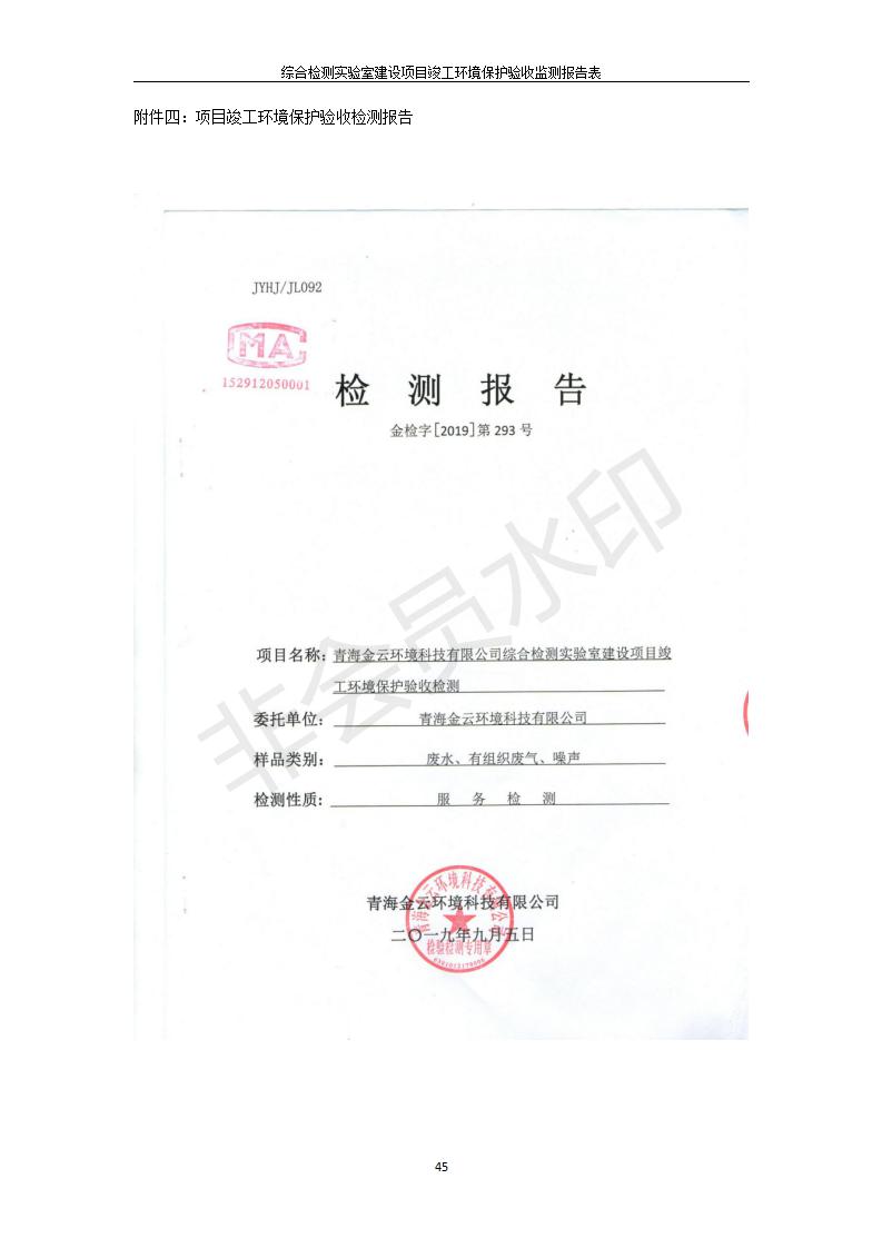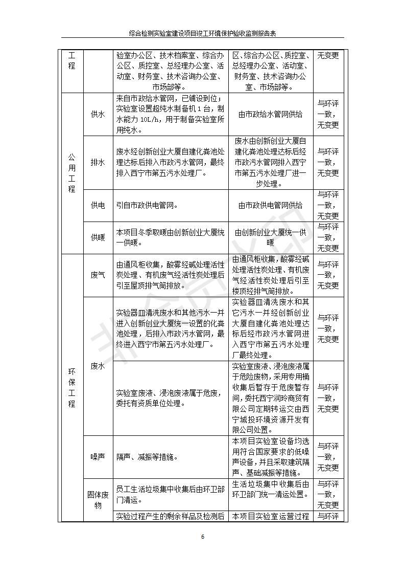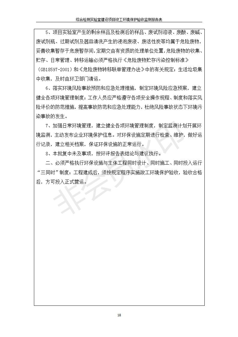 根據(jù)中華人民共和國國務(wù)院令第682號(hào)《國務(wù)院關(guān)于修改〈建設(shè)項(xiàng)目環(huán)境保護(hù)管理?xiàng)l例〉的決定》和《建設(shè)項(xiàng)目竣工環(huán)境保護(hù)驗(yàn)收暫行辦法》(國務(wù)院令682號(hào)),綜合檢測實(shí)驗(yàn)室建設(shè)項(xiàng)目(包括竣工環(huán)境保護(hù)驗(yàn)收監(jiān)測報(bào)告表和驗(yàn)收意見)公示如下。 一、項(xiàng)目名稱:綜合檢測實(shí)驗(yàn)室建設(shè)項(xiàng)目 二、地點(diǎn):西寧市經(jīng)濟(jì)技術(shù)開發(fā)區(qū)生物科技產(chǎn)業(yè)園區(qū)創(chuàng)新創(chuàng)業(yè)大廈南區(qū)15、16層 六、聯(lián)系電話:0971-6515411 七、公示時(shí)間:二〇一九年十一月十九日至二〇一九年十二月十六日 公示期間,對(duì)上述公示內(nèi)容如有異議,請(qǐng)以書面形式反饋,個(gè)人須署真實(shí)姓名,單位須加蓋公章。