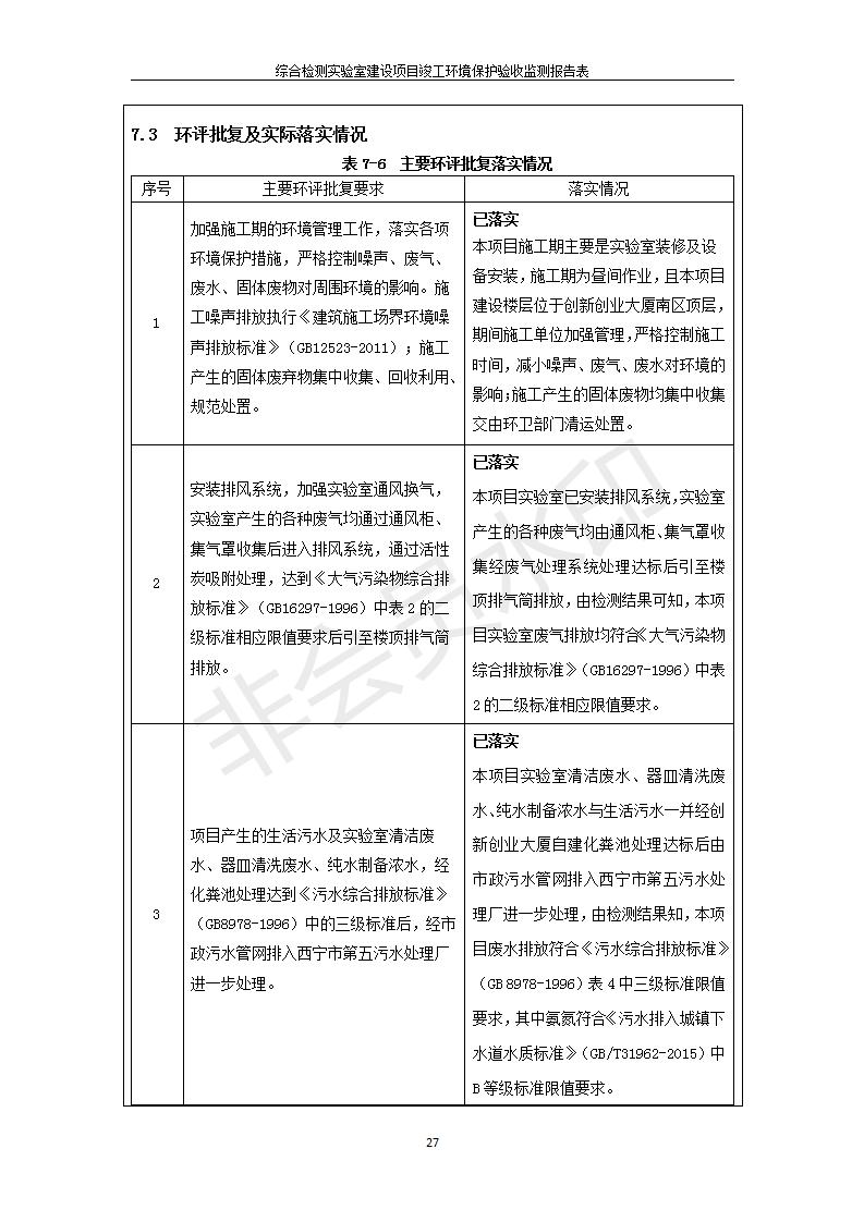 綜合檢測實(shí)驗(yàn)室建設(shè)項(xiàng)目竣工環(huán)境保護(hù)驗(yàn)收監(jiān)測報(bào)告表公示發(fā)布日期:(2019-11-19) 點(diǎn)擊次數(shù):2813 |