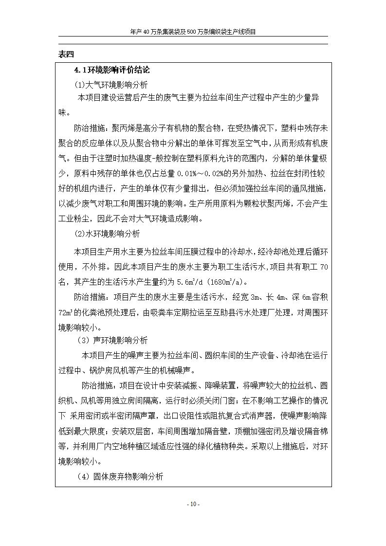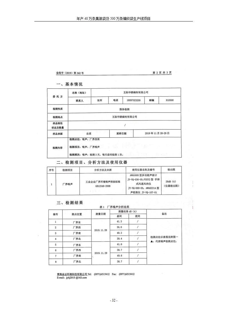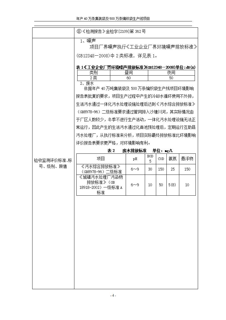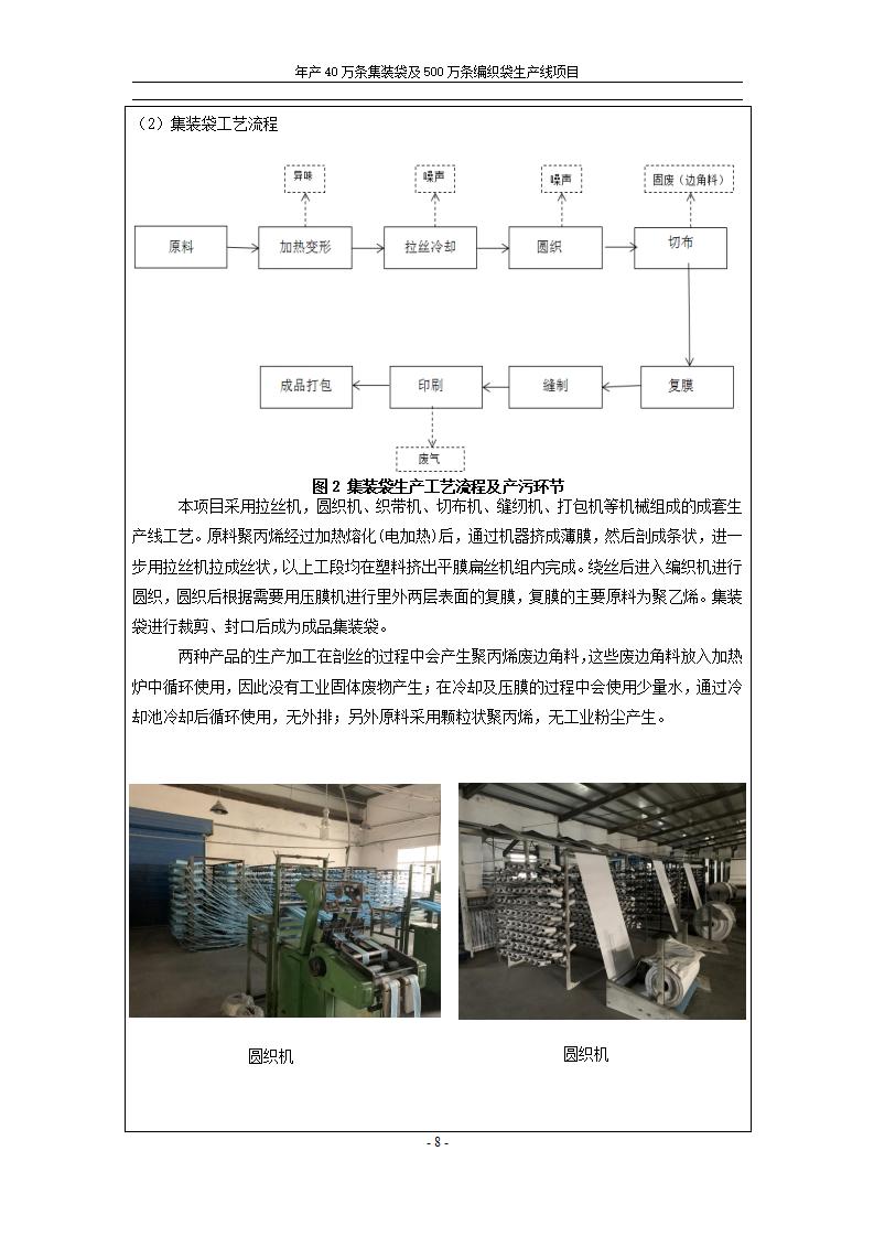 年產40萬條集裝袋及500萬條編織袋生產線項目竣工環(huán)境保護驗收監(jiān)測報告表公示發(fā)布日期:(2020-1-13) 點擊次數(shù):2402 |