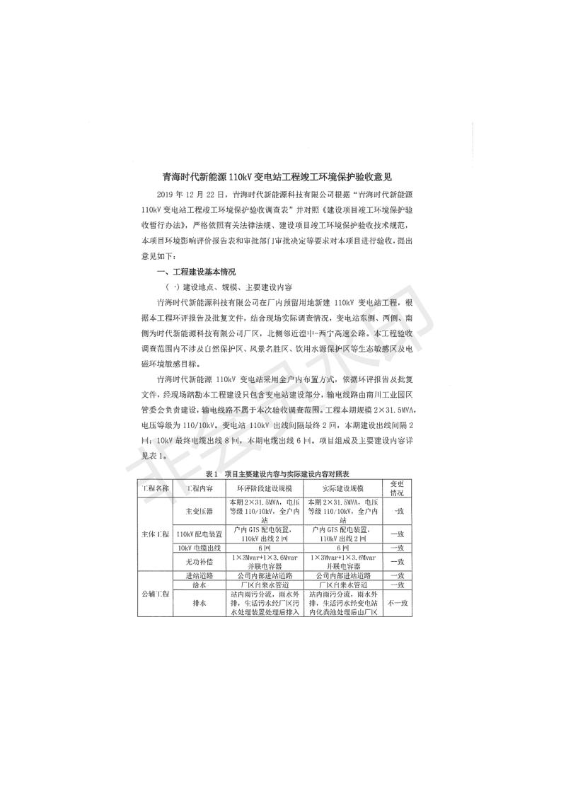 青海時(shí)代新能源110kV變電站工程竣工環(huán)境保護(hù)驗(yàn)收調(diào)查表公示發(fā)布日期:(2020-1-14) 點(diǎn)擊次數(shù):2631 |