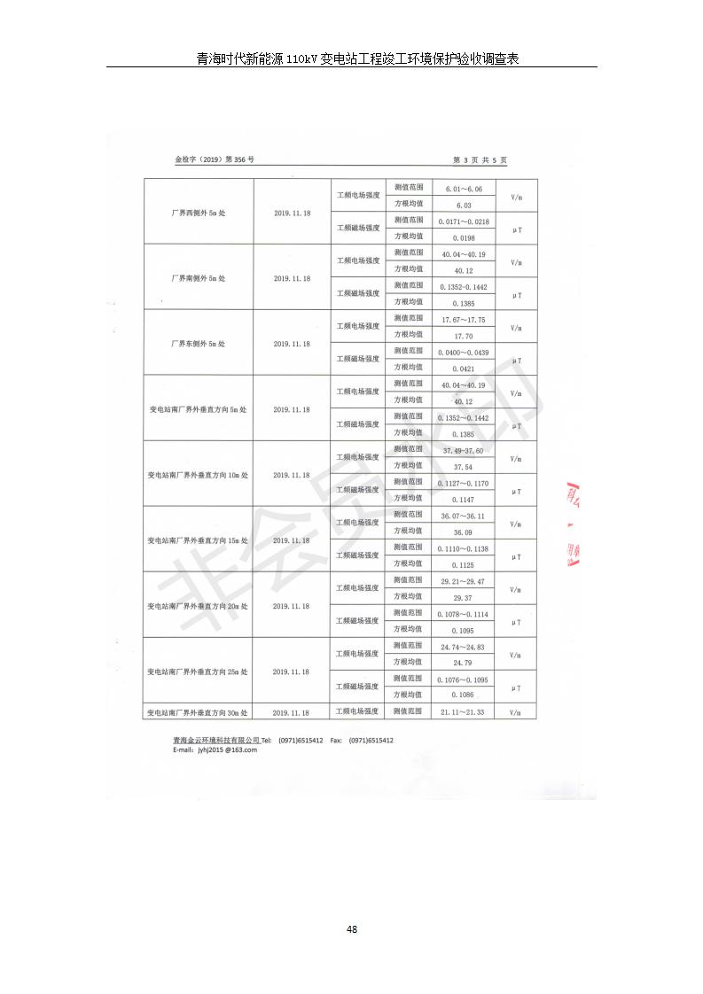 根據(jù)中華人民共和國國務(wù)院令第682號(hào)《國務(wù)院關(guān)于修改〈建設(shè)項(xiàng)目環(huán)境保護(hù)管理?xiàng)l例〉的決定》和《建設(shè)項(xiàng)目竣工環(huán)境保護(hù)驗(yàn)收暫行辦法》(國務(wù)院令682號(hào)),青海時(shí)代新能源110kV變電站工程(包括竣工環(huán)境保護(hù)驗(yàn)收調(diào)查表和驗(yàn)收意見)公示如下。 一、項(xiàng)目名稱:青海時(shí)代新能源110kV變電站工程 二、地點(diǎn):青海省西寧市南川工業(yè)園區(qū)創(chuàng)業(yè)路182號(hào)青海時(shí)代新能源科技有限公司廠區(qū)內(nèi) 三、建設(shè)單位:青海時(shí)代新能源科技有限公司 四、建設(shè)內(nèi)容:青海時(shí)代新能源 110kV 變電站采用全戶內(nèi)布置方式,依據(jù)環(huán)評(píng)報(bào)告及批復(fù)文件,經(jīng)現(xiàn)場踏勘本工程建設(shè)只包含變電站建設(shè)部分,輸電線路由南川工業(yè)園區(qū)管委會(huì)負(fù)責(zé)建設(shè),輸電線路不屬于本次驗(yàn)收調(diào)查范圍。工程本期規(guī)模2×31.5MVA,電壓等級(jí)為110/10kV。變電站 110kV 出線間隔最終2回,本期建設(shè)出線間隔2回;10kV最終電纜出線8回,本期電纜出線6回。 五、聯(lián)系人:張工 六、聯(lián)系電話:0971-6515411 七、公示時(shí)間:二〇二〇年一月十四日至二〇二〇年二月十三日 公示期間,對(duì)上述公示內(nèi)容如有異議,請(qǐng)以書面形式反饋,個(gè)人須署真實(shí)姓名,單位須加蓋公章。