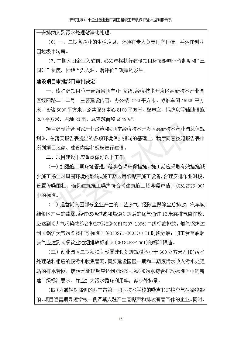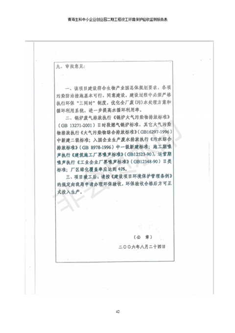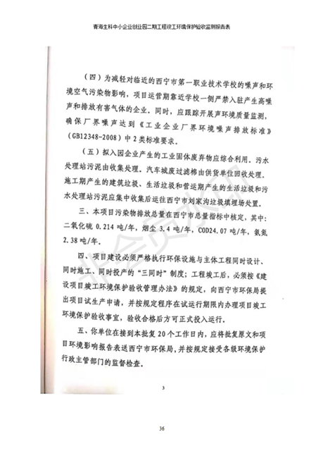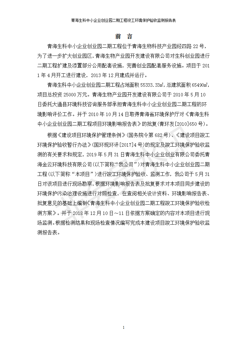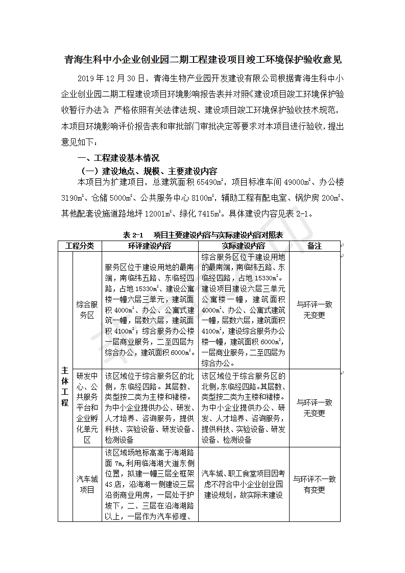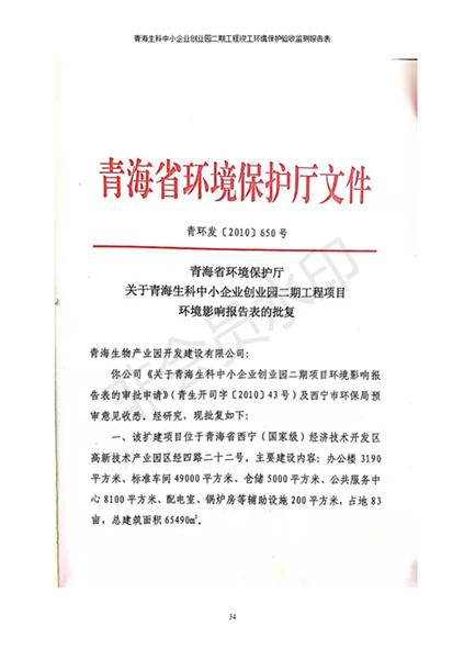 據中華人民共和國國務院令第682號《國務院關于修改〈建設項目環(huán)境保護管理條例〉的決定》和《建設項目竣工環(huán)境保護驗收暫行辦法》(國務院令682號),青海生科中小企業(yè)創(chuàng)業(yè)園二期工程建設項目(包括竣工環(huán)境保護驗收監(jiān)測報告表和驗收意見)公示如下。 一、項目名稱:青海生科中小企業(yè)創(chuàng)業(yè)園二期工程建設項目 二、地點:西寧市生物園區(qū)經四路26號 五、聯(lián)系人:張憲周 六、聯(lián)系電話:13997290897 七、公示時間:二〇二〇年二月三日至二〇二〇年二月二十八日 公示期間,對上述公示內容如有異議,請以書面形式反饋,個人須署真實姓名,單位須加蓋公章。