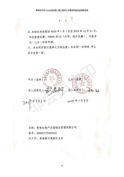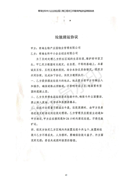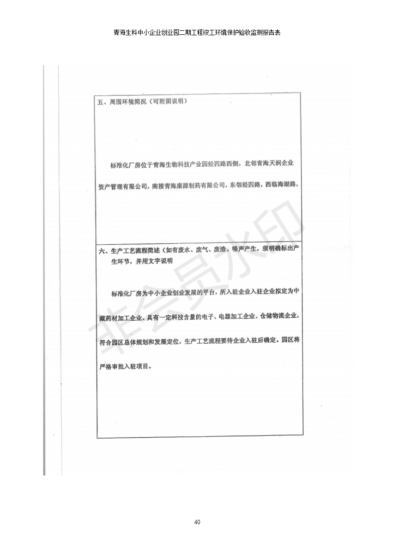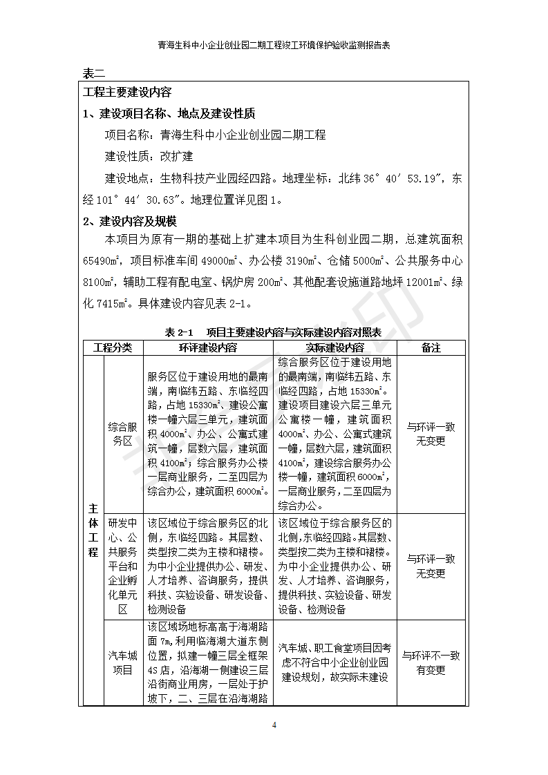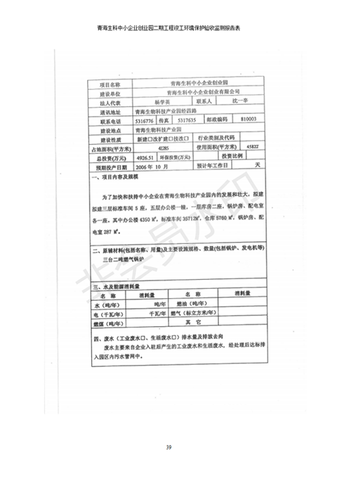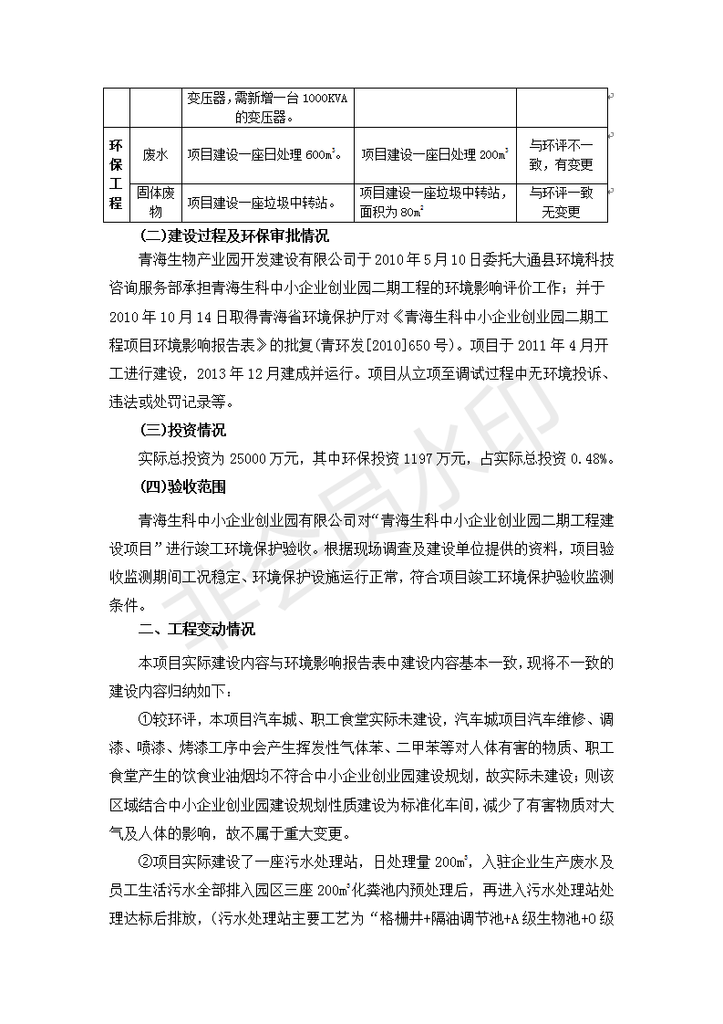 據中華人民共和國國務院令第682號《國務院關于修改〈建設項目環(huán)境保護管理條例〉的決定》和《建設項目竣工環(huán)境保護驗收暫行辦法》(國務院令682號),青海生科中小企業(yè)創(chuàng)業(yè)園二期工程建設項目(包括竣工環(huán)境保護驗收監(jiān)測報告表和驗收意見)公示如下。 一、項目名稱:青海生科中小企業(yè)創(chuàng)業(yè)園二期工程建設項目 二、地點:西寧市生物園區(qū)經四路26號 五、聯(lián)系人:張憲周 六、聯(lián)系電話:13997290897 七、公示時間:二〇二〇年二月三日至二〇二〇年二月二十八日 公示期間,對上述公示內容如有異議,請以書面形式反饋,個人須署真實姓名,單位須加蓋公章。