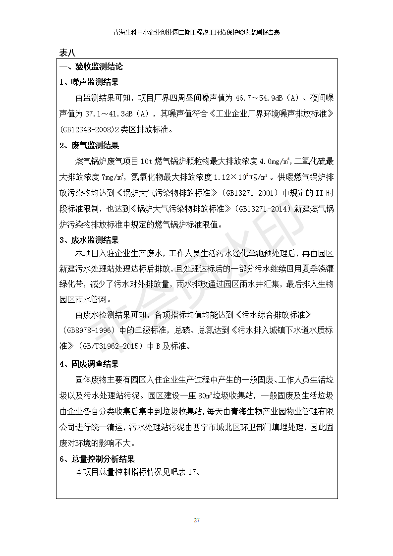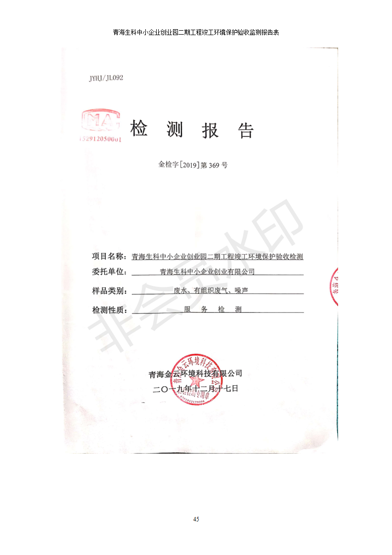 青海生科中小企業(yè)創(chuàng)業(yè)園二期工程建設項目竣工環(huán)境保護驗收檢測報告表公示發(fā)布日期:(2020-2-1) 點擊次數(shù):2248 |