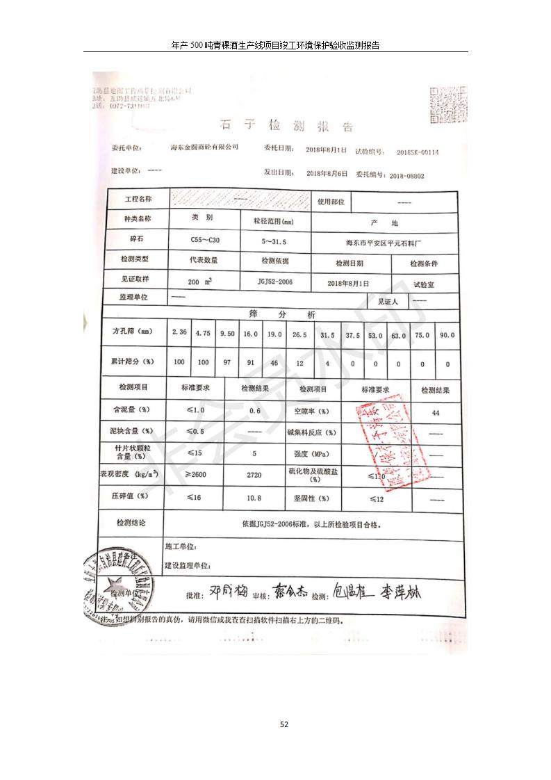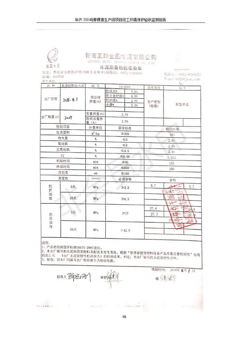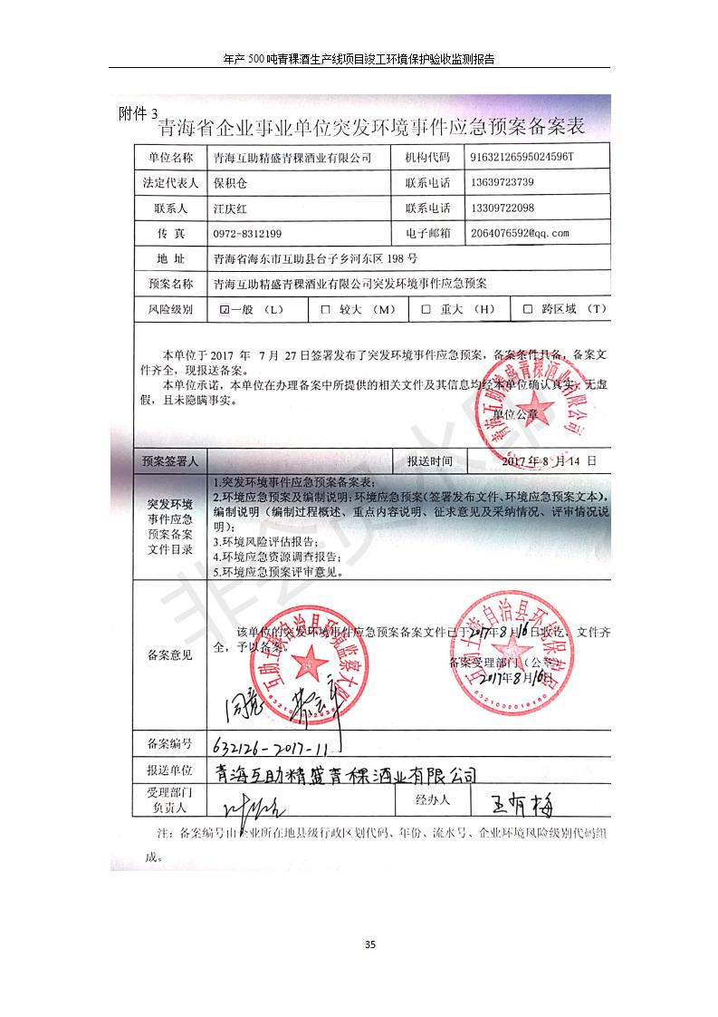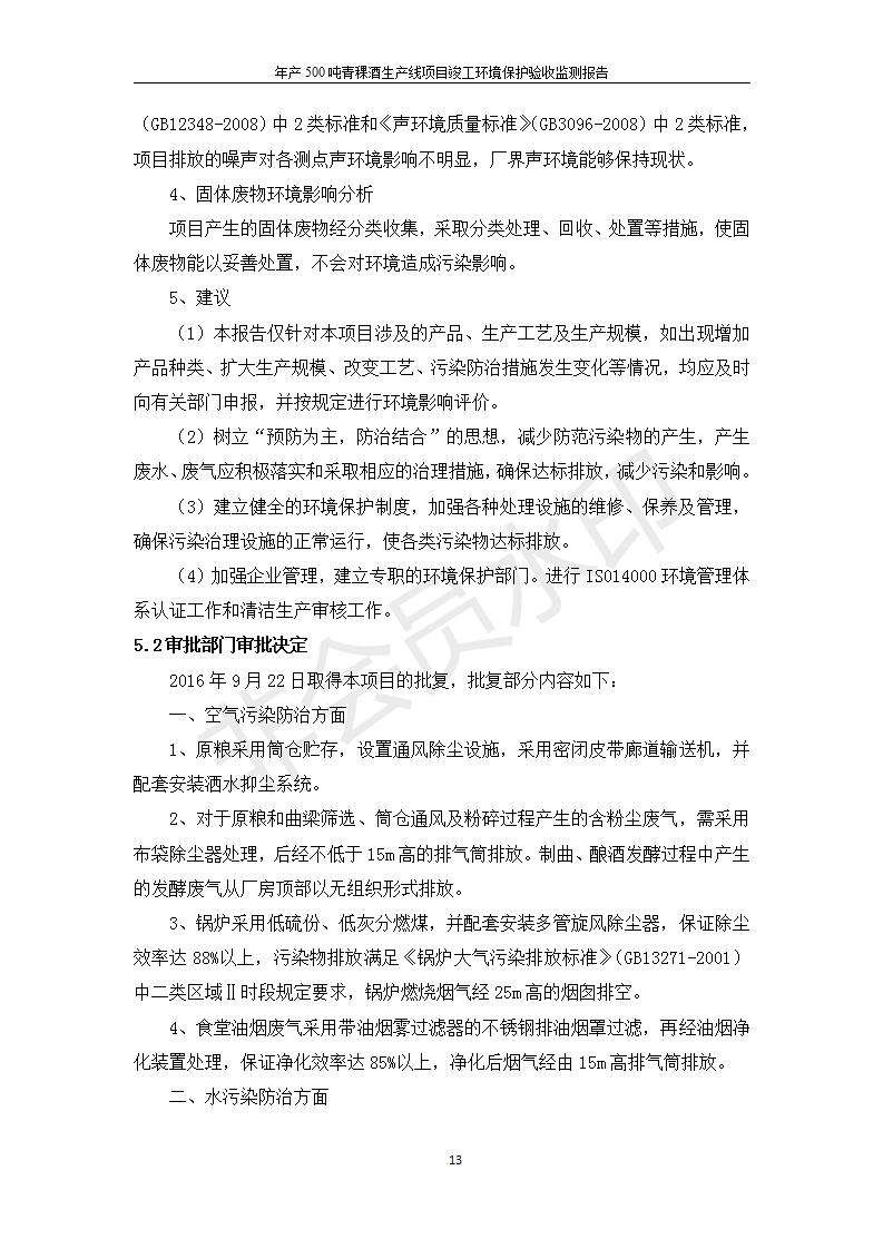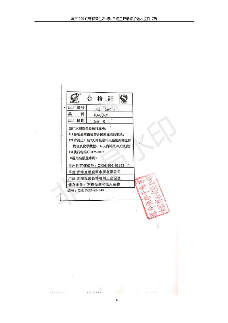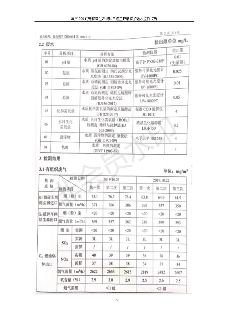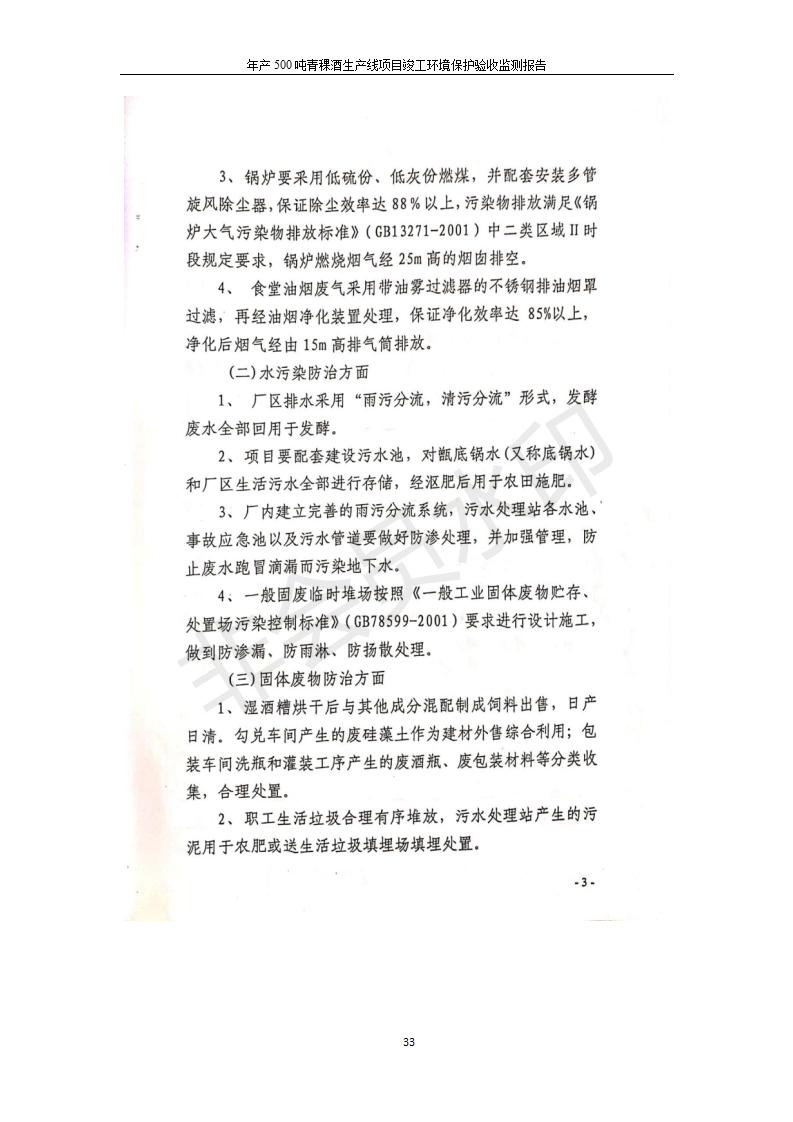 根據(jù)中華人民共和國國務(wù)院令第682號《國務(wù)院關(guān)于修改〈建設(shè)項(xiàng)目環(huán)境保護(hù)管理?xiàng)l例〉的決定》和《建設(shè)項(xiàng)目竣工環(huán)境保護(hù)驗(yàn)收暫行辦法》(國務(wù)院令682號),綜合檢測實(shí)驗(yàn)室建設(shè)項(xiàng)目(包括竣工環(huán)境保護(hù)驗(yàn)收監(jiān)測報告表和驗(yàn)收意見)公示如下。 一、項(xiàng)目名稱:青;ブ⑶囡茦I(yè)有限公司年產(chǎn)500噸青稞酒業(yè)生產(chǎn)線建設(shè)項(xiàng)目 二、地點(diǎn):青海省海東市互助土族自治縣臺子鄉(xiāng)河?xùn)|村198號