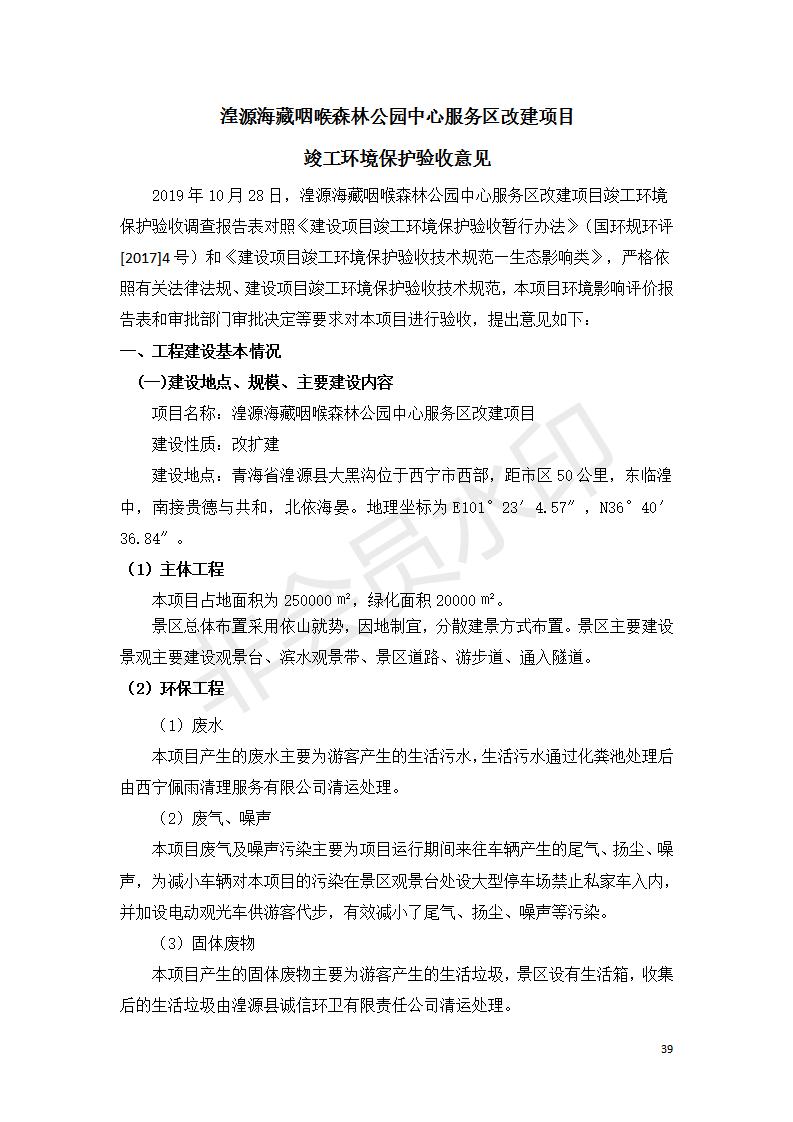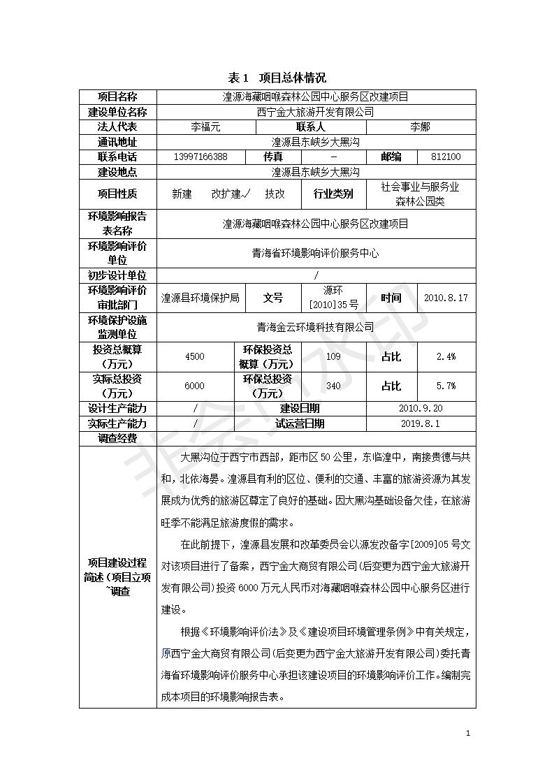 湟源海藏咽喉森林公園中心服務(wù)區(qū)改建項(xiàng)目(階段性)竣工環(huán)境保護(hù)驗(yàn)收調(diào)查表發(fā)布日期:(2020-4-29) 點(diǎn)擊次數(shù):2963 |