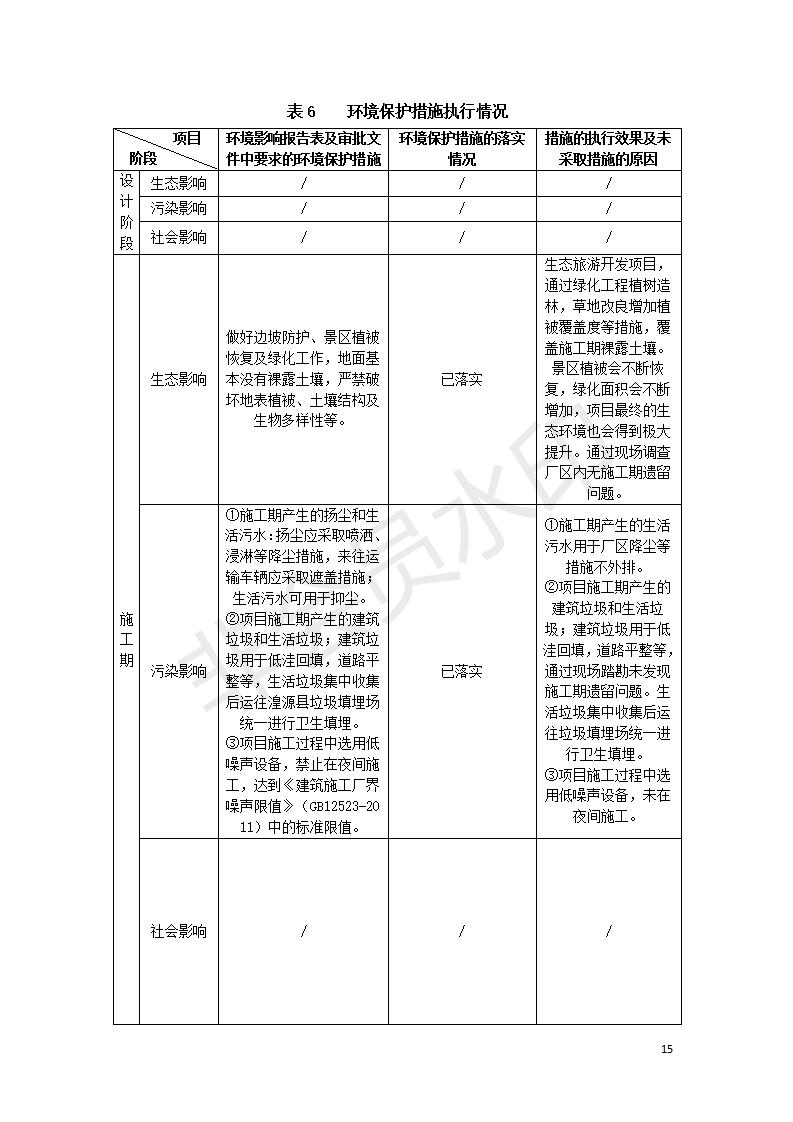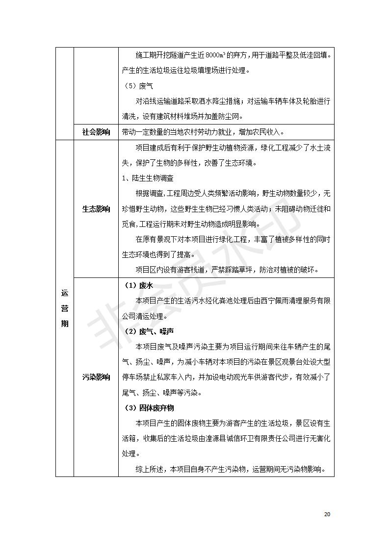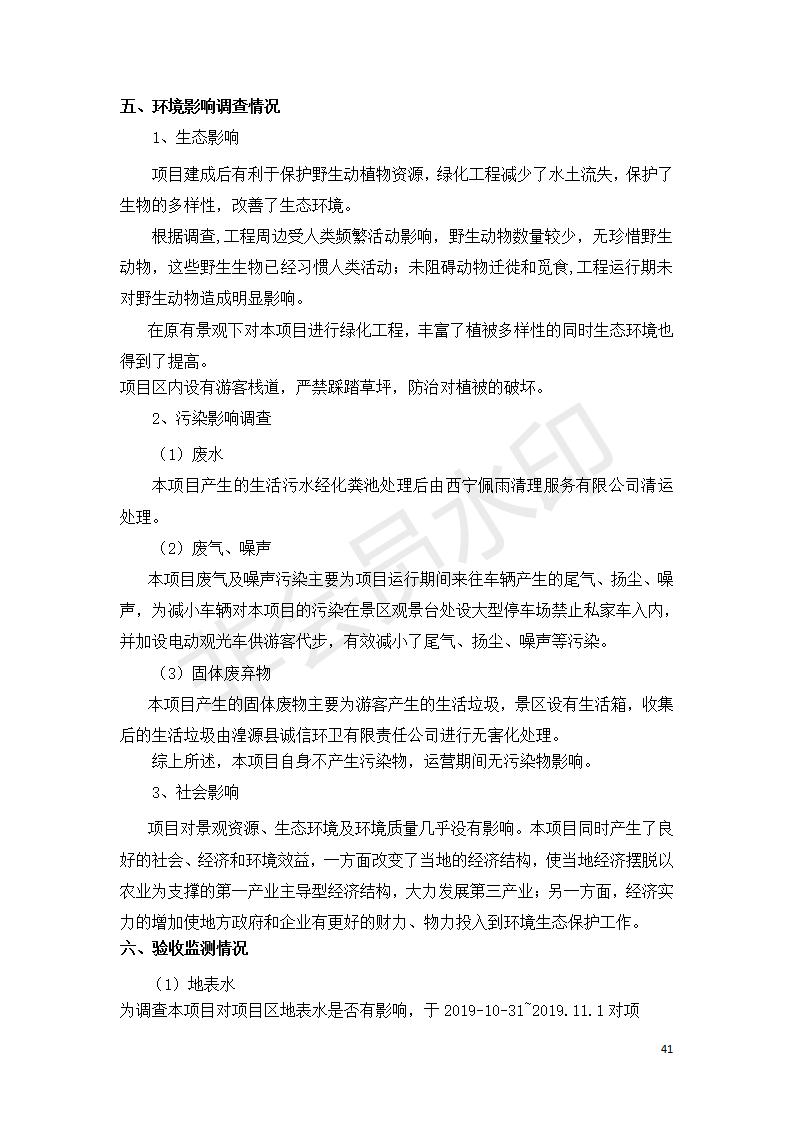 根據(jù)中華人民共和國(guó)國(guó)務(wù)院令第682號(hào)《國(guó)務(wù)院關(guān)于修改〈建設(shè)項(xiàng)目環(huán)境保護(hù)管理?xiàng)l例〉的決定》和《建設(shè)項(xiàng)目竣工環(huán)境保護(hù)驗(yàn)收暫行辦法》(國(guó)務(wù)院令682號(hào)),湟源海藏咽喉森林公園中心服務(wù)區(qū)改建項(xiàng)目(階段性),(包括竣工環(huán)境保護(hù)驗(yàn)收調(diào)查表和驗(yàn)收意見(jiàn))公示如下。 一、項(xiàng)目名稱:湟源海藏咽喉森林公園中心服務(wù)區(qū)改建項(xiàng)目(階段性) 竣工環(huán)境保護(hù)驗(yàn)收調(diào)查表 二、地點(diǎn):青海省湟源縣東峽鄉(xiāng)大黑溝 三、建設(shè)單位:西寧金大旅游開(kāi)發(fā)有限公司 四、建設(shè)內(nèi)容:本次階段性驗(yàn)收以自然景觀為主,建設(shè)內(nèi)容為濱水景觀帶、觀景臺(tái)、景區(qū)道路及基礎(chǔ)設(shè)施。項(xiàng)目范圍從景區(qū)大門(mén)至中心位置,全長(zhǎng)4800m。 五、聯(lián)系人:張工 六、聯(lián)系電 話:0971-6515411 七、公示時(shí)間:二〇二〇年四月二十九日至二〇二〇年五月二十八日 公示期間,對(duì)上述公示內(nèi)容如有異議,請(qǐng)以書(shū)面形式反饋,個(gè)人須署真實(shí)姓名,單位須加蓋公章。