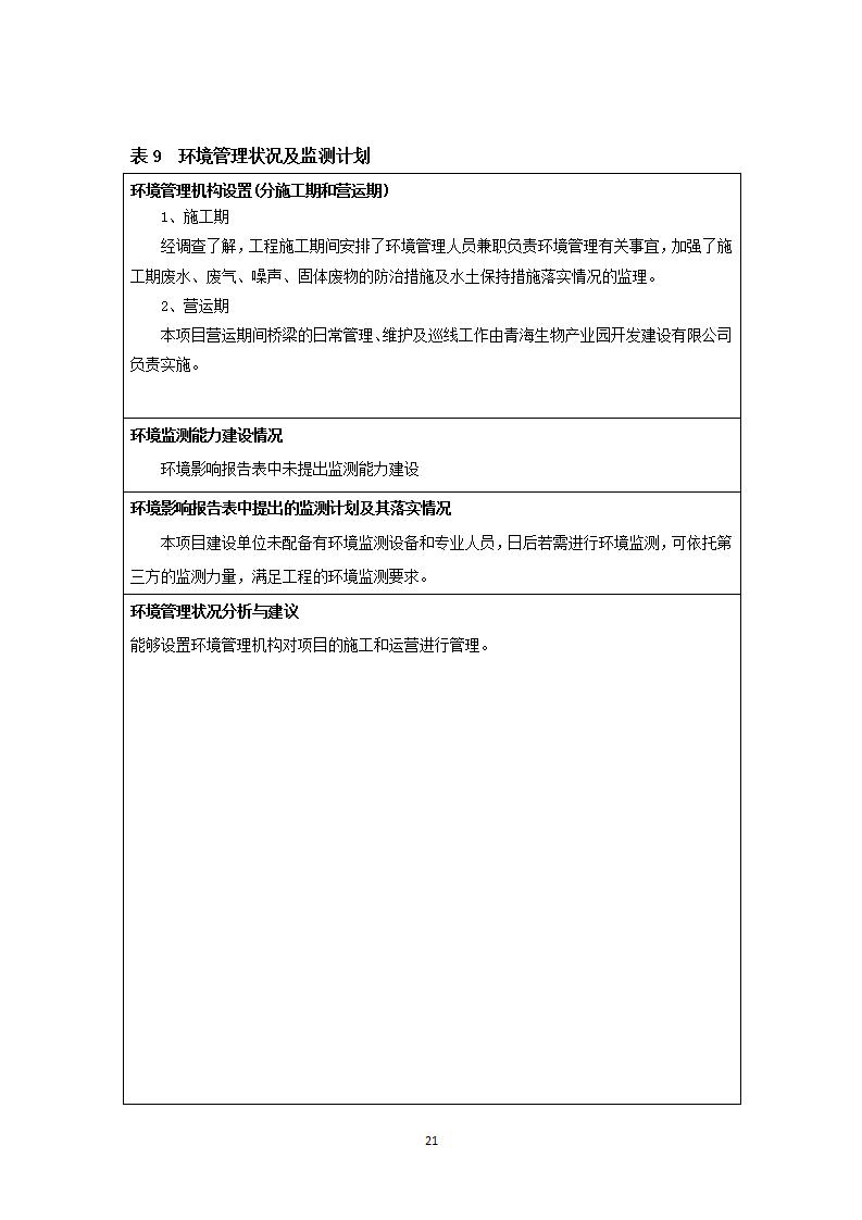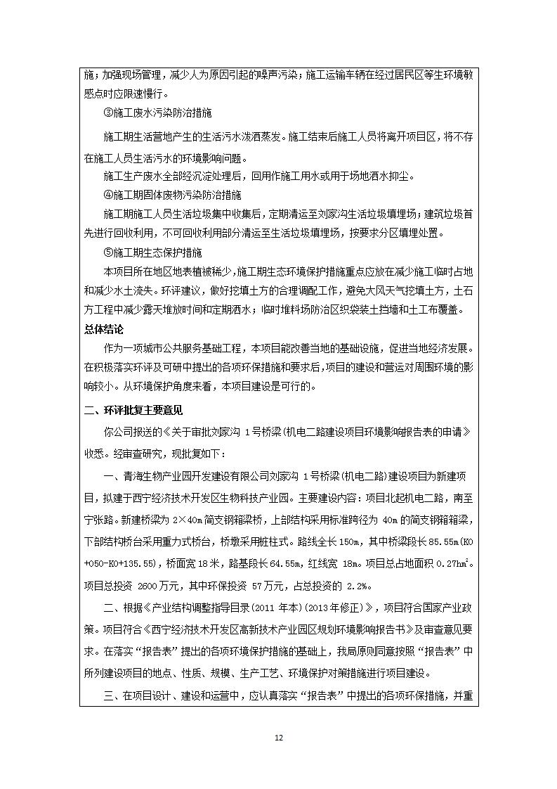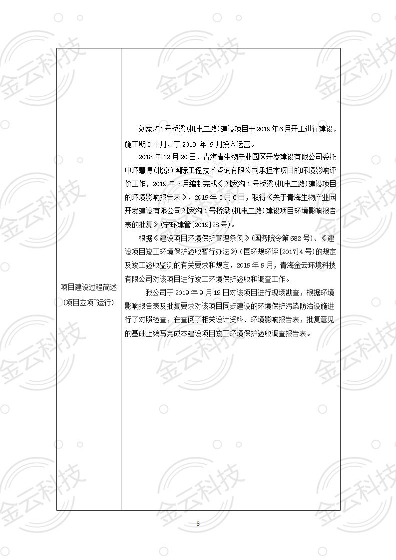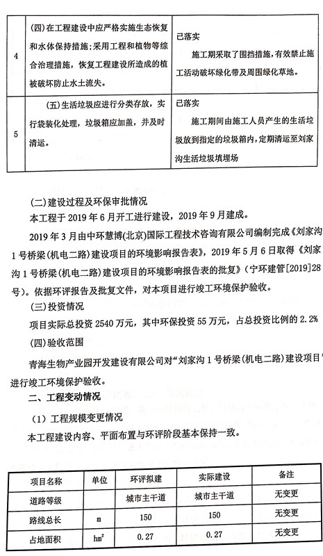 根據(jù)中華人民共和國國務(wù)院令第682號《國務(wù)院關(guān)于修改〈建設(shè)項目環(huán)境保護(hù)管理條例〉的決定》和《建設(shè)項目竣工環(huán)境保護(hù)驗收暫行辦法》(國務(wù)院令682號),劉家溝1號橋梁(機電二路)建設(shè)項目竣工環(huán)境保護(hù)驗收調(diào)查表,(包括竣工環(huán)境保護(hù)驗收調(diào)查表和驗收意見)公示如下。 一、項目名稱:劉家溝1號橋梁(機電二路)建設(shè)項目竣工環(huán)境保護(hù)驗收調(diào)查表 二、地點:青海省西寧市城北區(qū)生物園區(qū) 三、建設(shè)單位:青海生物產(chǎn)業(yè)園開發(fā)建設(shè)有限公司 四、建設(shè)內(nèi)容:本項目主要建設(shè)內(nèi)容為橋梁工程、接線路基等工程。項目南北走向,北起機電二路,南至寧張路,項目全長150m. 五、聯(lián)系人:張工 六、聯(lián)系電 話:0971-6515411 七、公示時間:二〇二〇年六月二日至二〇二〇年六月三十日 公示期間,對上述公示內(nèi)容如有異議,請以書面形式反饋,個人須署真實姓名,單位須加蓋公章。 |